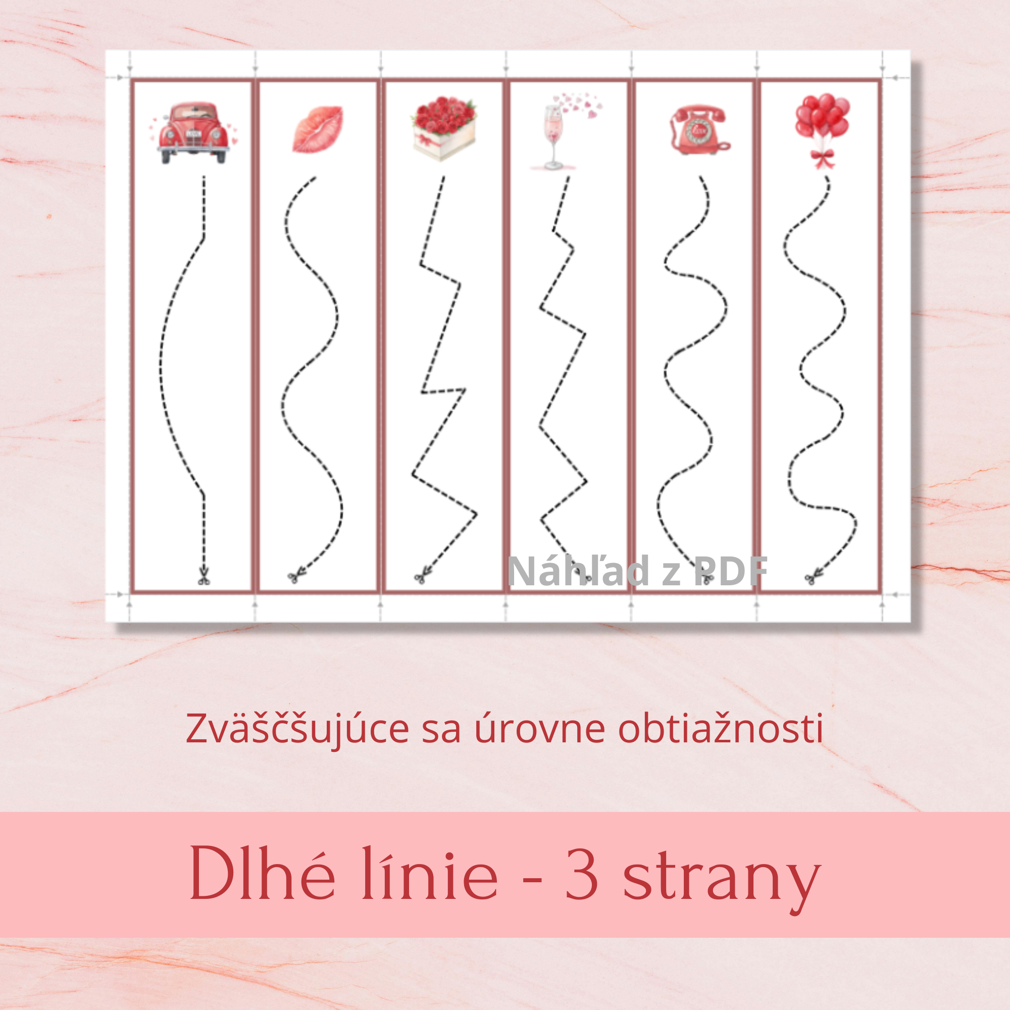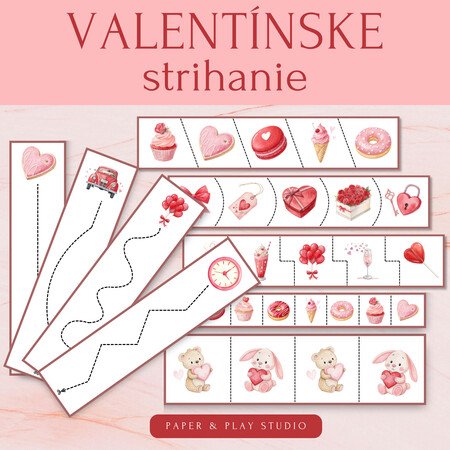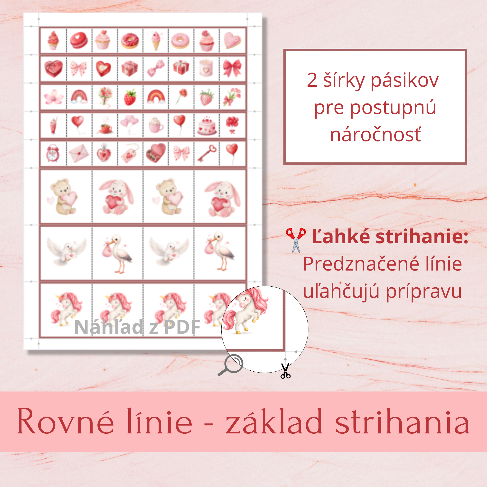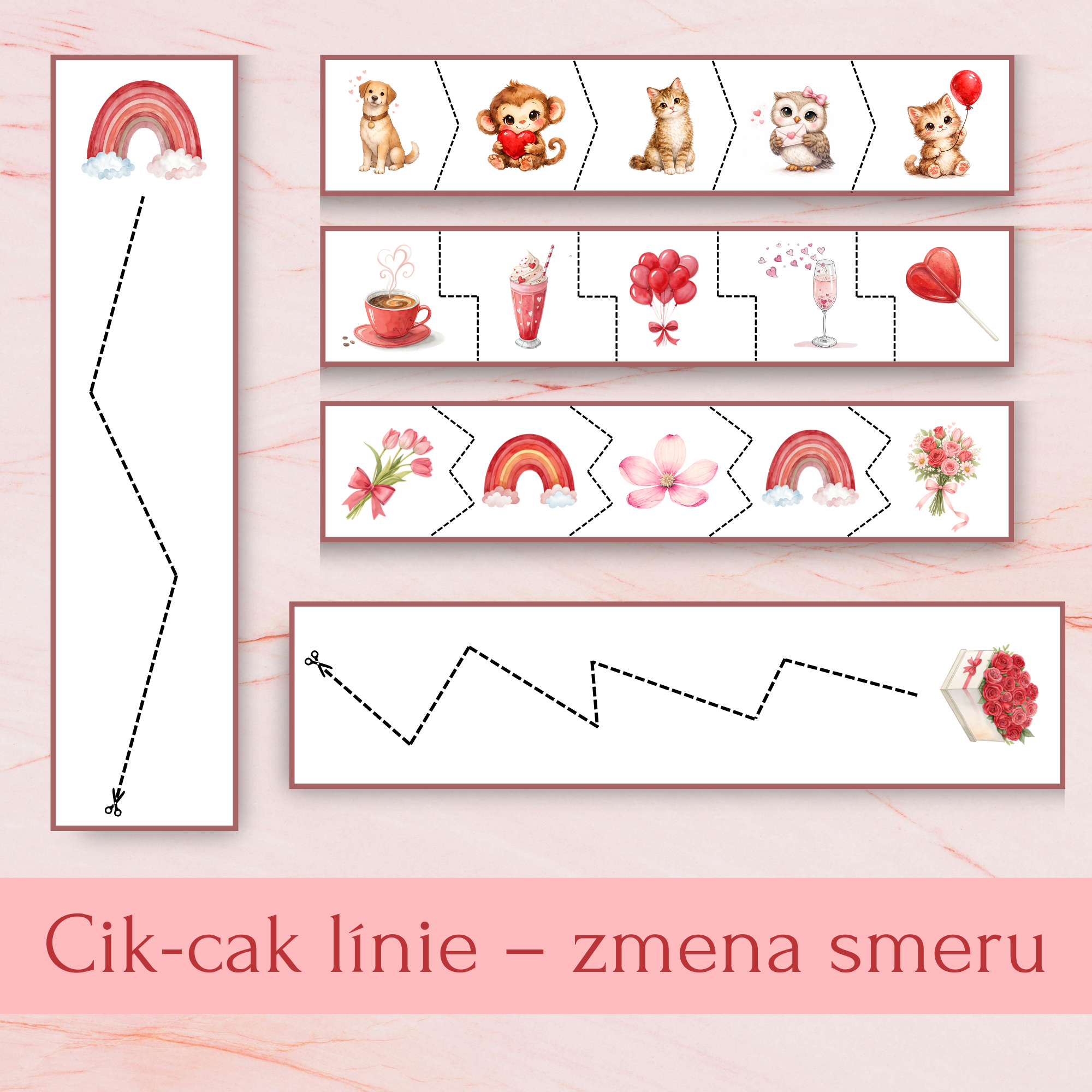 Tematická sada aktivít na rozvoj strihania s valentínskymi motívmi pre deti vo veku 3–6 rokov. Vhodné pre MŠ, predškolákov aj domáce vzdelávanie.
