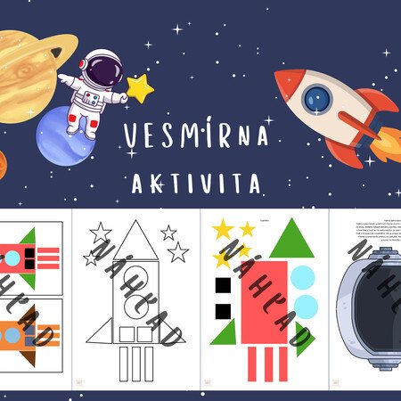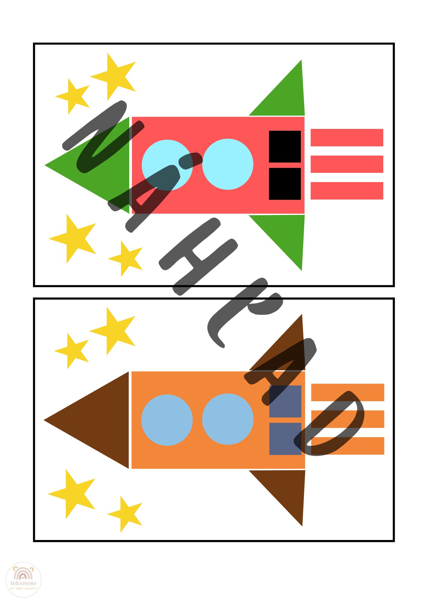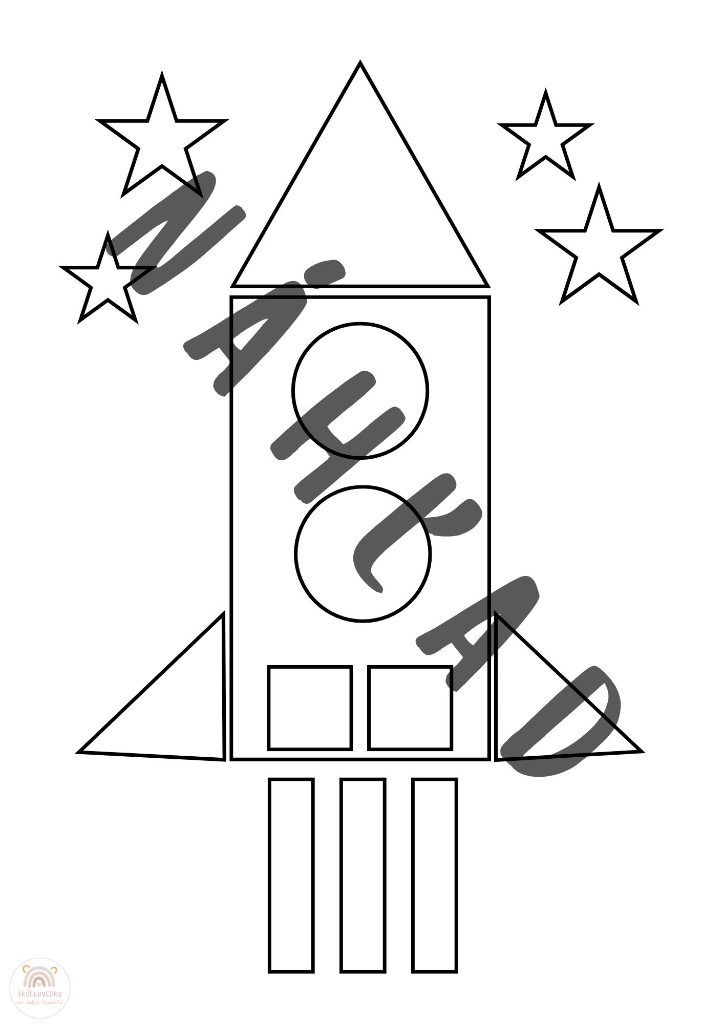 📍Súbor obsahuje aktivitu, v ktorej budú deti tvoriť vesmírnu loď z geometrických tvarov, podľa predlohy. Môžu ju tvoriť voľne napríklad na stole, alebo na šablónach. Odporúčam zalaminovať a so suchým zipsom to bude super :). Prípadne si deti tvary môžu vystrihnúť samé, alebo im to vystrihnete a oni to už len budú lepiť na papier.