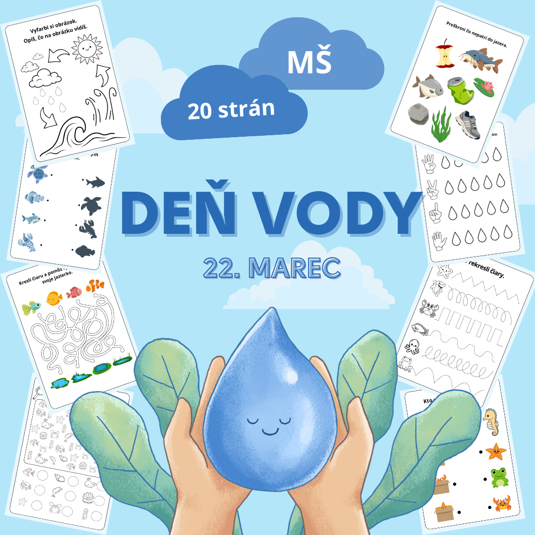 Súbor obsahuje úlohy na tému Voda, k príležitosti Medzinárodného dňa vody. Úlohy sú určené pre deti predškolského veku (3-6 rokov) a sú zamerané na rozvoj predčitateľskej gramotnosti, logického myslenia a grafomotoriky. Aktivity podporujú komplexný rozvoj dieťaťa a sú spracované hravou, veku primeranou formou.