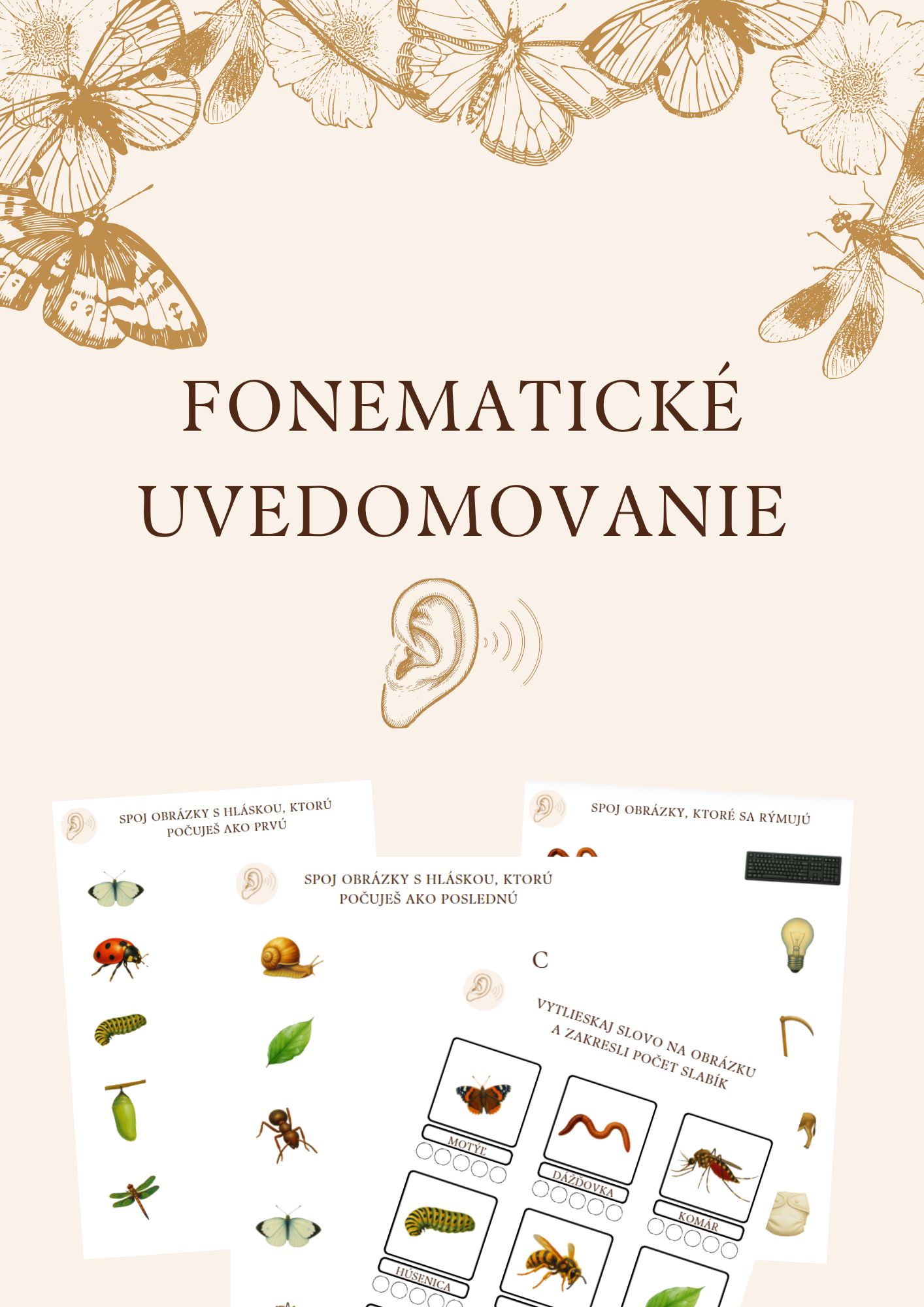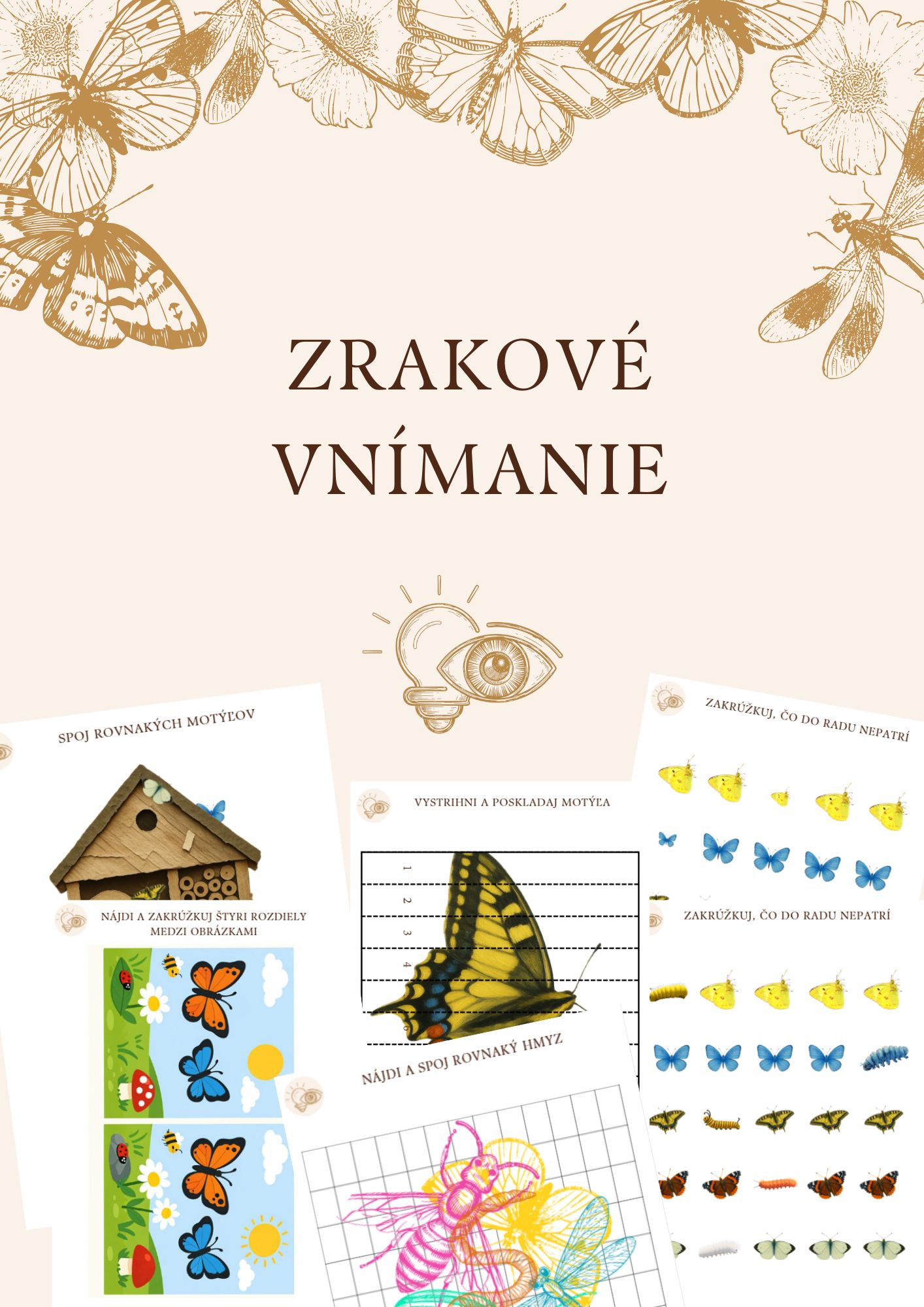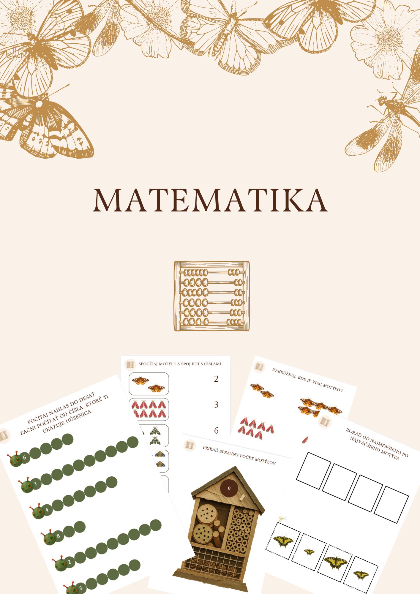 Pracovné listy sú zamerané na tému motýle. Súbor obsahuje pracovné listy na precvičovanie grafomotoriky, matematiky, logiky, zrakového vnímania a fonematického uvedomovania. Pracovné listy sú určené predovšetkým predškolákom, no samozrejme ich môžu využiť aj mladšie deti v MŠ. Súbor obsahuje: