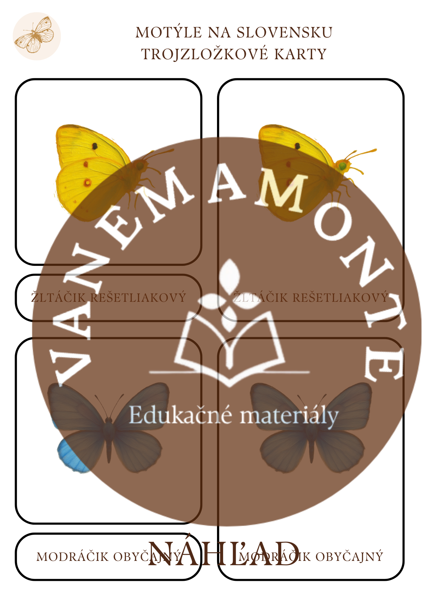 3x trojzložkové karty Motýle na Slovensku