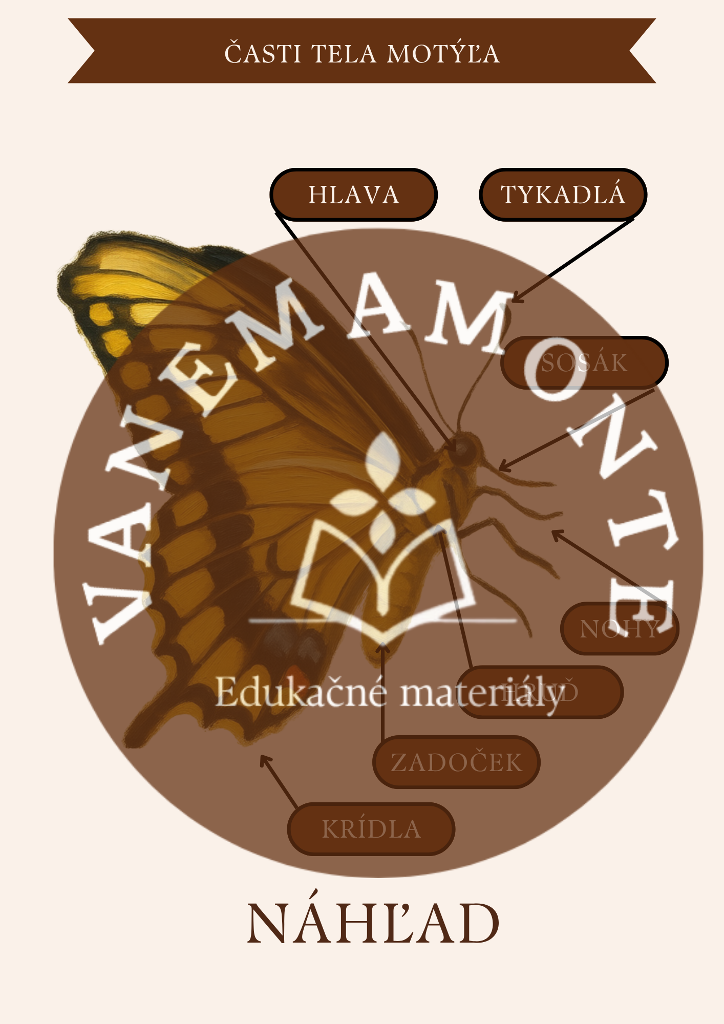 1x plagát Časti tela motýľa