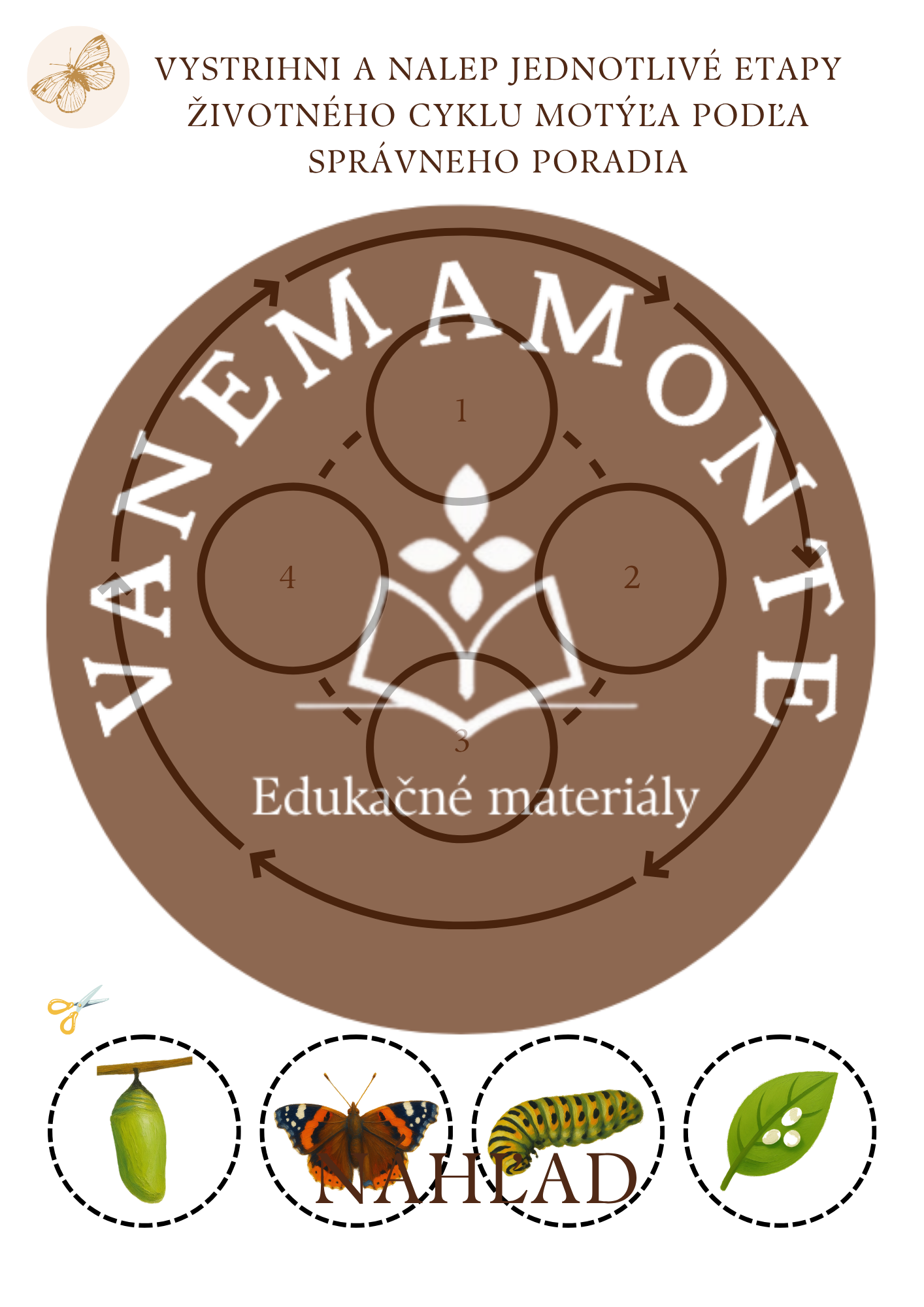 1x pracovný list Životný cyklus motýľa