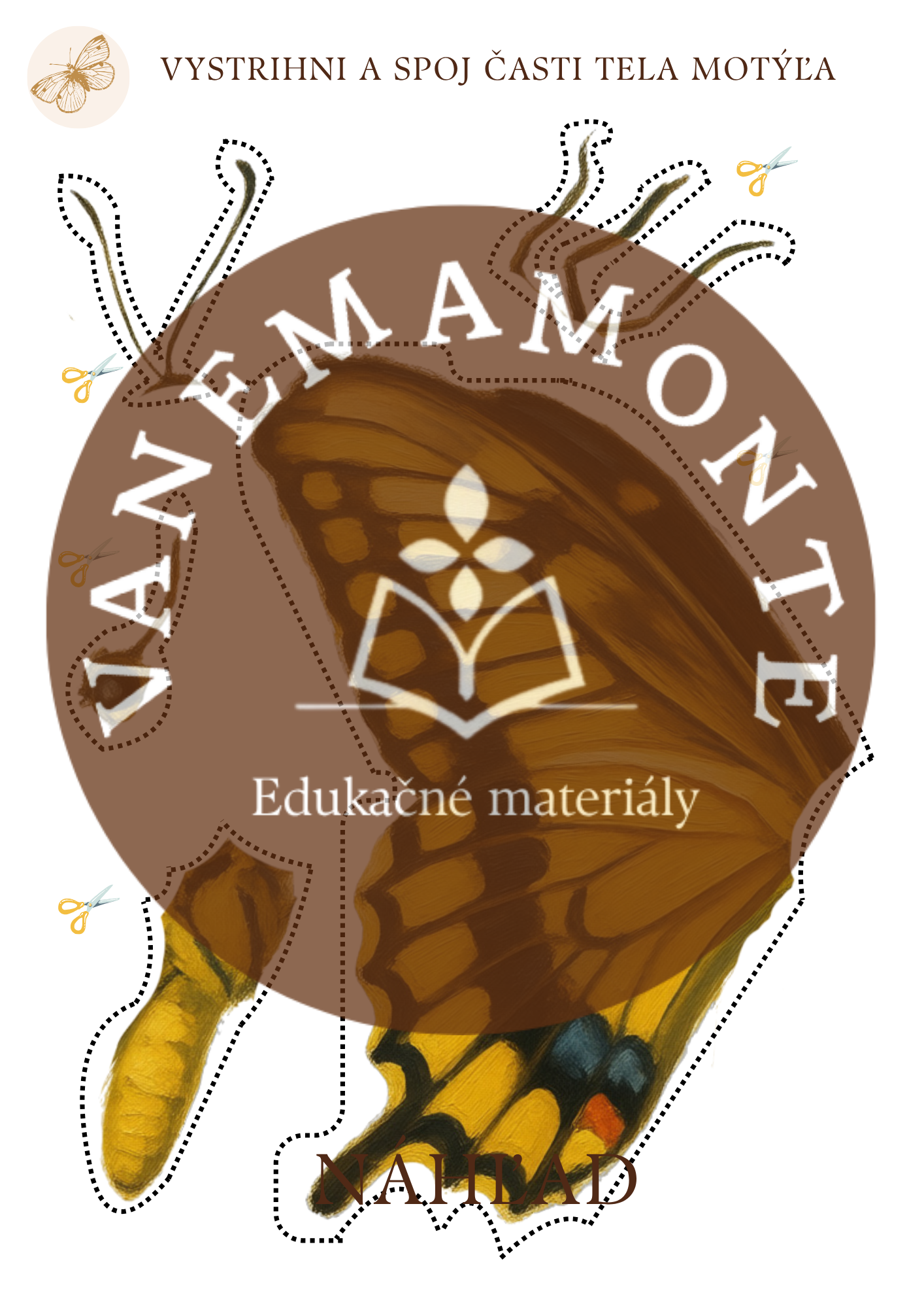 1x pracovný list Časti tela motýľa
