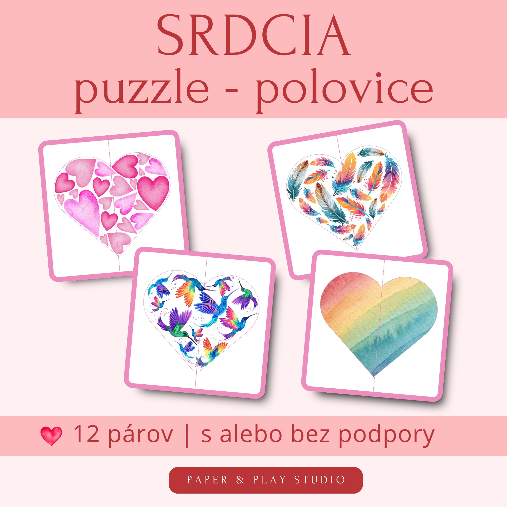 Materiál SRDCIA – puzzle polovice je edukačná aktivita určená pre deti predškolského a mladšieho školského veku.