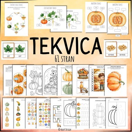 časti rastliny tekvice – plagát, priraďovanie názvov (strany 14–15, 18)
