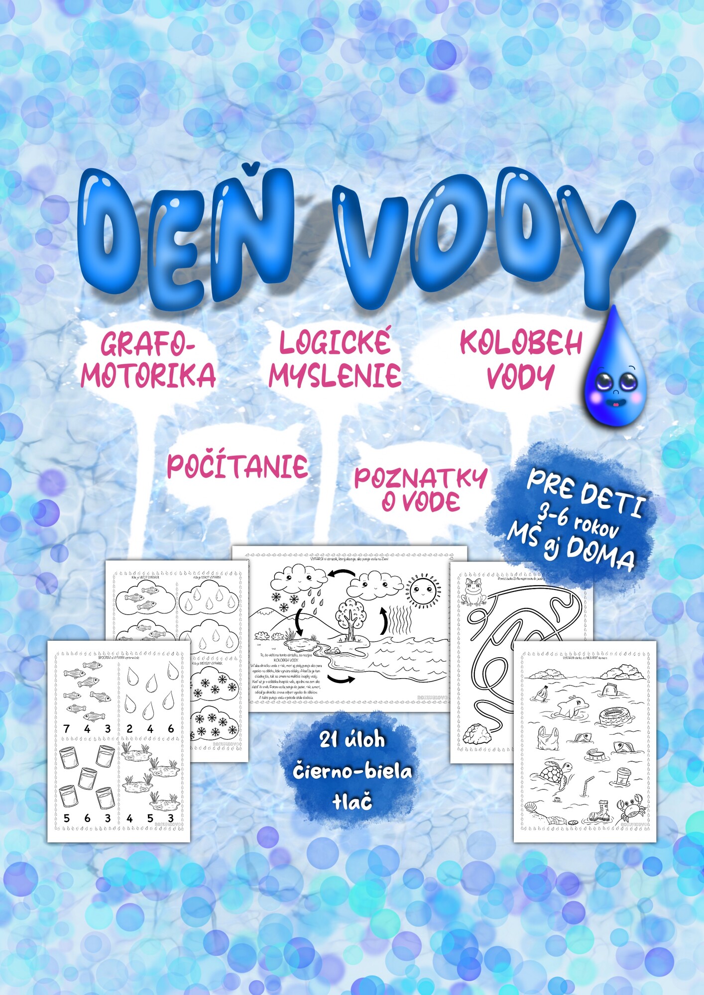 21 úloh o vode, ktoré hravou formou upevňujú základné poznatky o vode, jej využití, ochrane a význame pre život💧