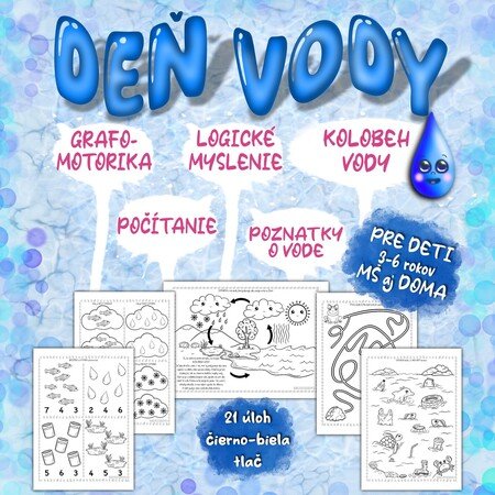 V súbore nájdete 18 pracovných listov s 21 úlohami o vode, ktoré prepájajú viaceré vzdelávacie oblasti.