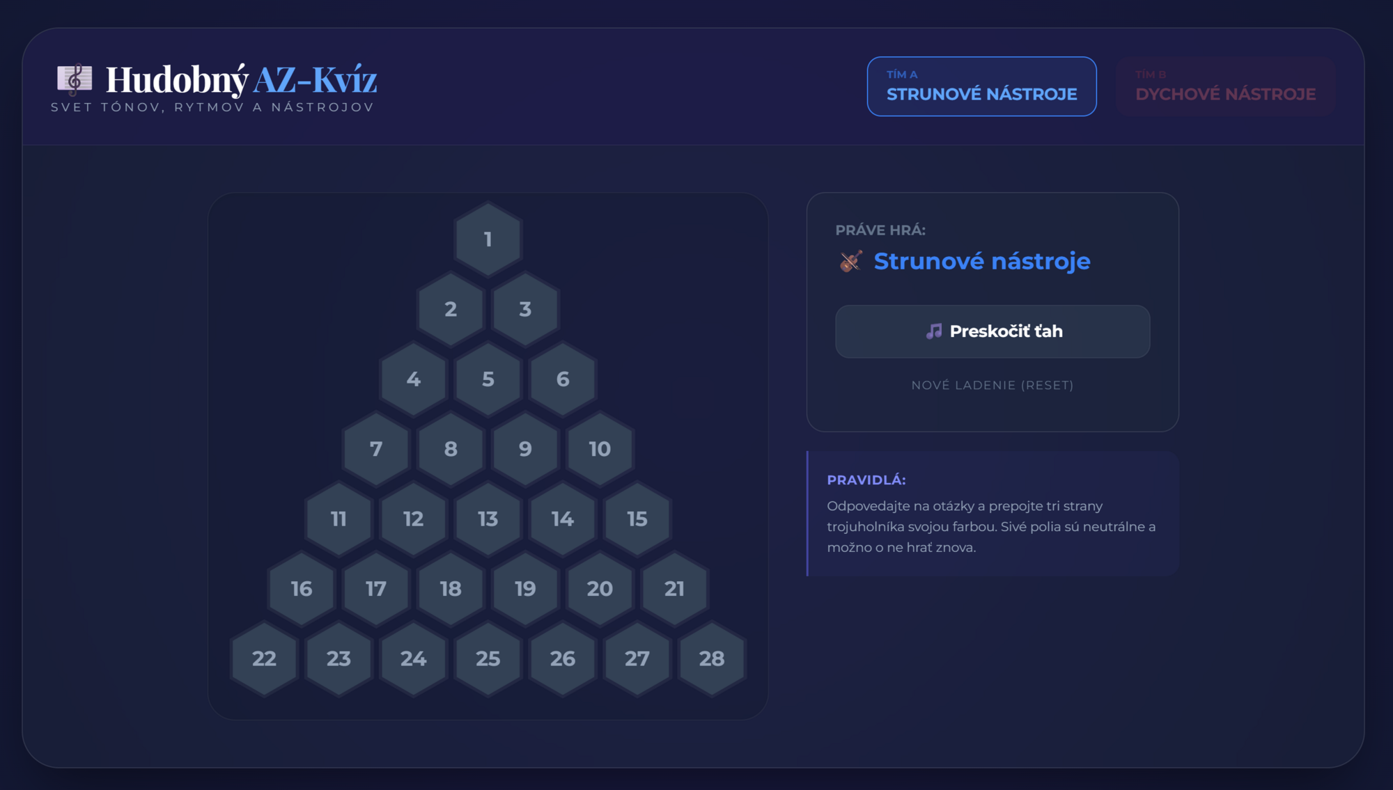 - Prvky gamifikácie: Integrovaný audio engine a vizuálna časomiera (30 sekúnd na otázku) zvyšujú napätie a motiváciu žiakov počas hodiny.
