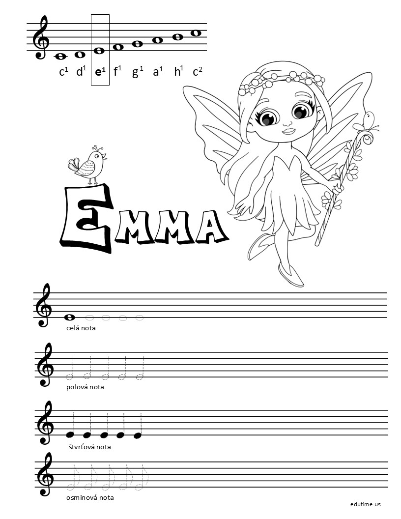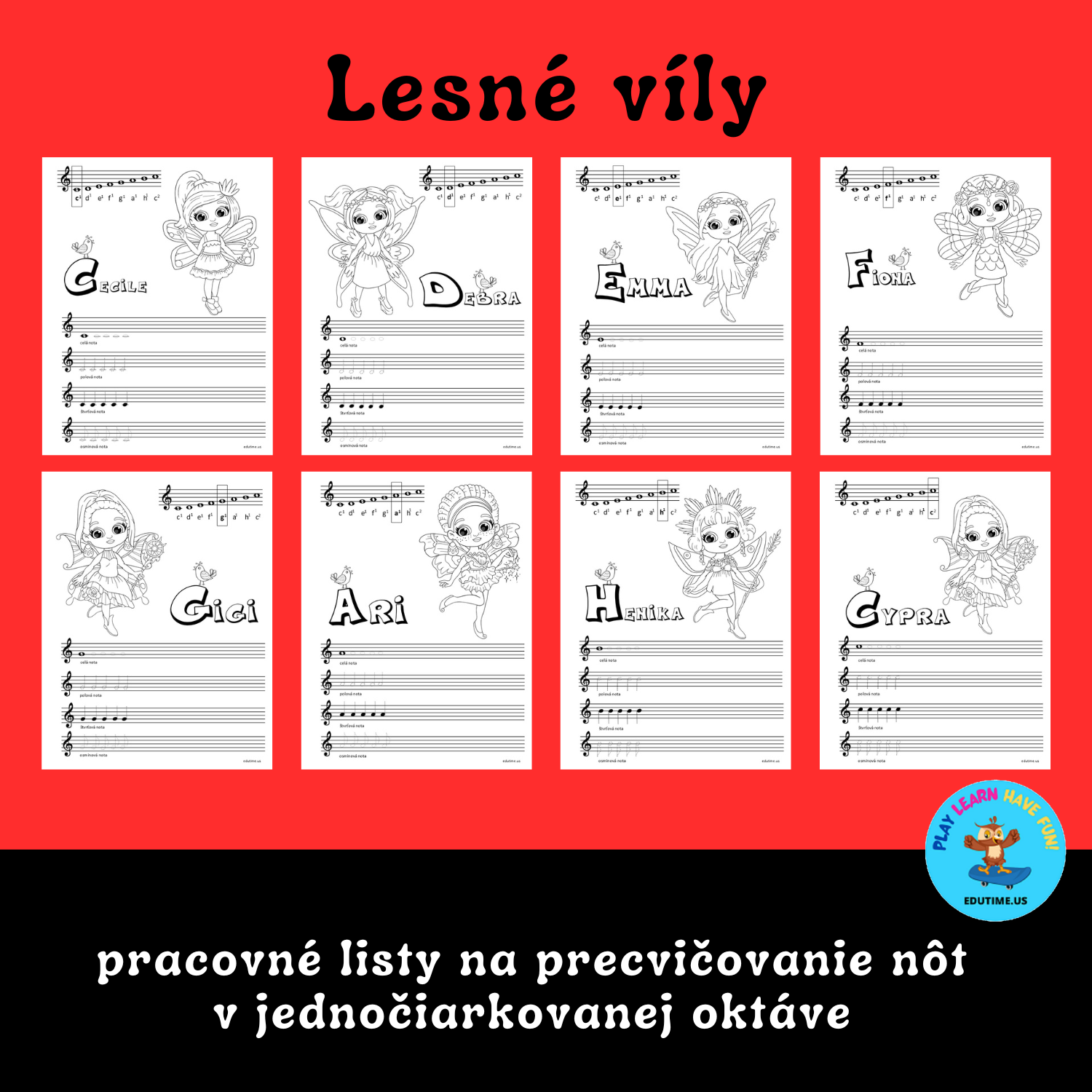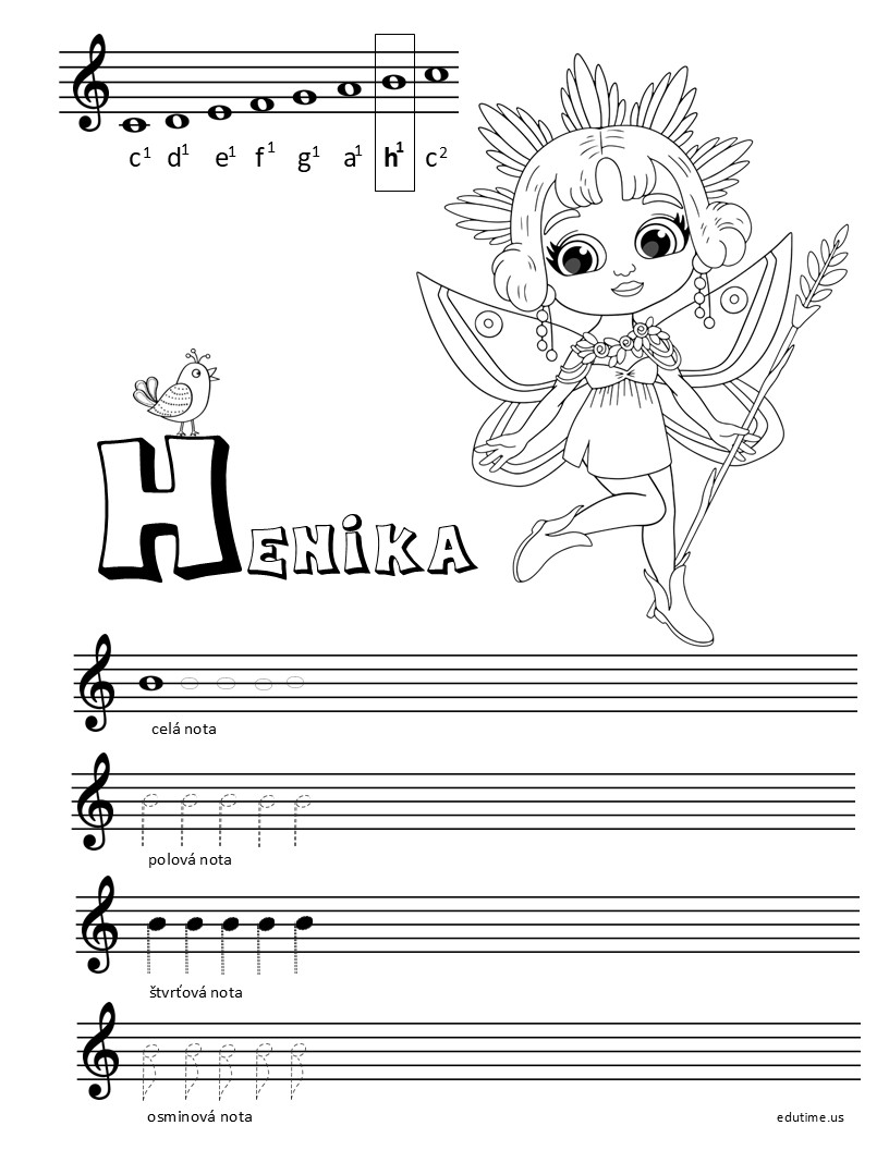 Pracovné listy na obťahovanie a precvičovanie písania nôt v jednočiarkovanej oktáve. Noty celá, polová, osminová a štvrťová.