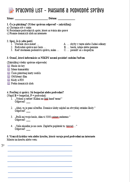 - Pracovný list: Na upevnenie vedomostí a reflexiu naučeného.