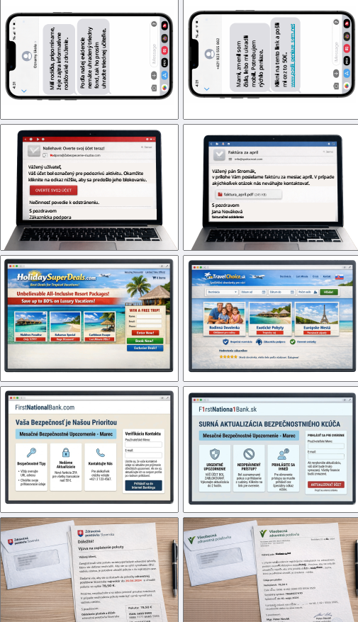 - Hra „Detektív digitálnych správ“: Sada obrázkov, na ktorých sa žiaci učia v praxi určovať, či ide o podvodnú alebo bezpečnú správu.