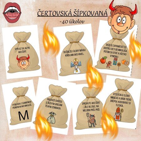 Vrecúška zalaminujeme, vystrihneme, rozvesíme po priestore. Deti hľadajú vrecúška a plnia úlohy.