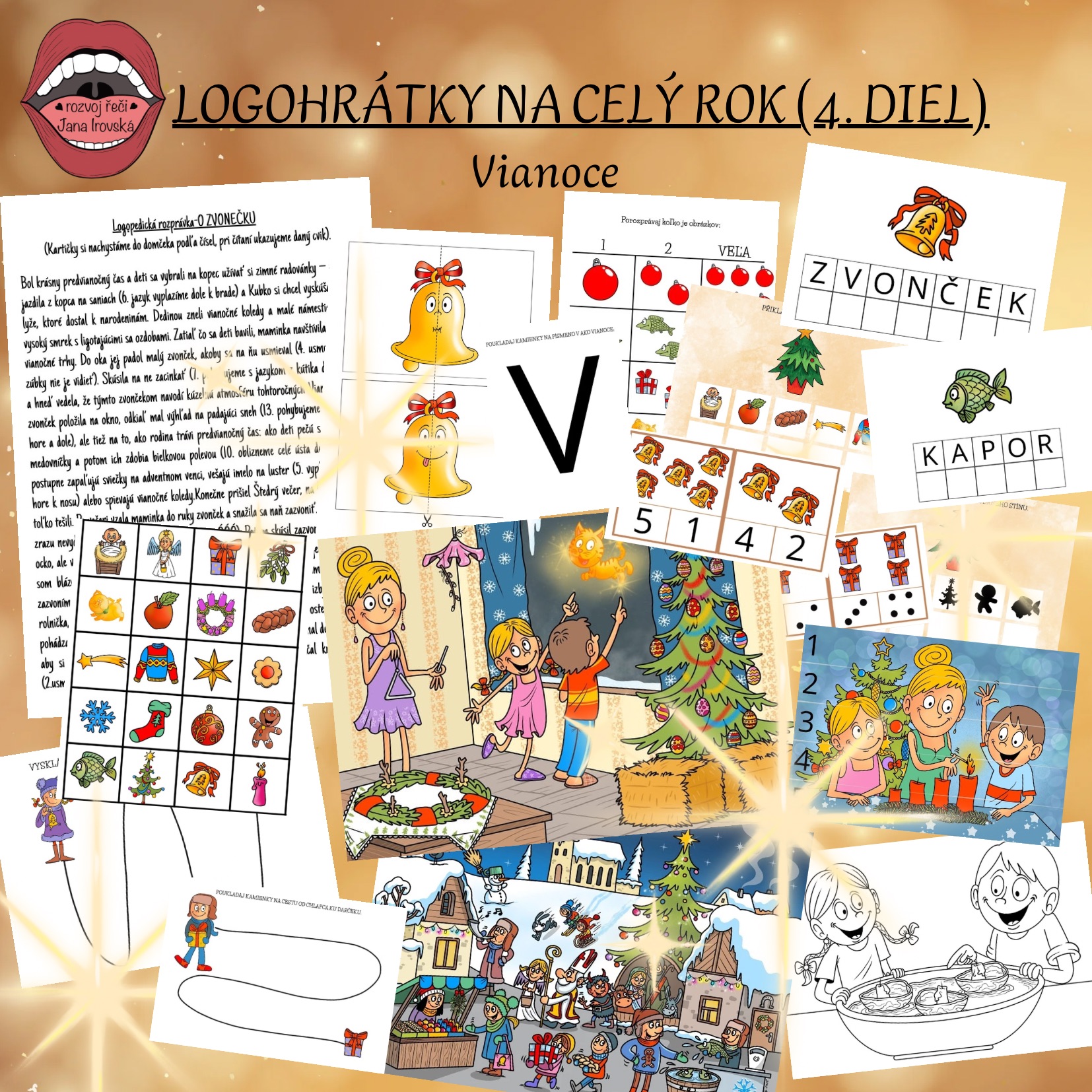 súbor obsahuje príbeh O ZVONČEKU, demonštračný obrázok, nezmyselný obrázok, o ktorých sa rozprávame, tvoríme jednoduché vety, rozvíjame slovnú zásobu. Ďalej sú tu oromotorické cviky, slabikovanie, ukladanie kamienkov, dychové cvičenia, skladanie slov, štipcovanie, omaľovánky, skladačky.