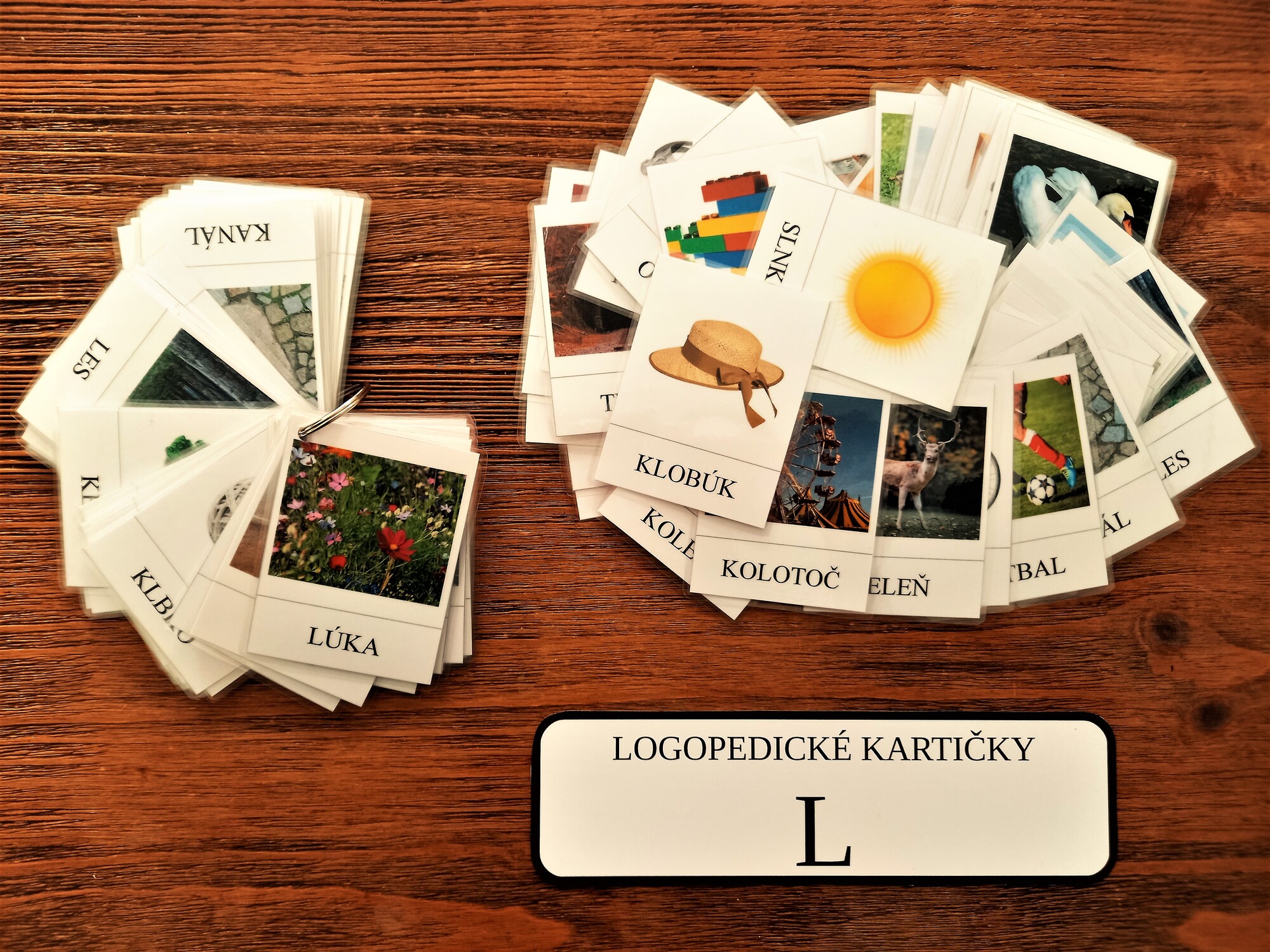 Logopedické kartičky na hlásku L - 54 kusov s rozmerom 8x6 cm. Vznikli v spolupráci s logopédom.