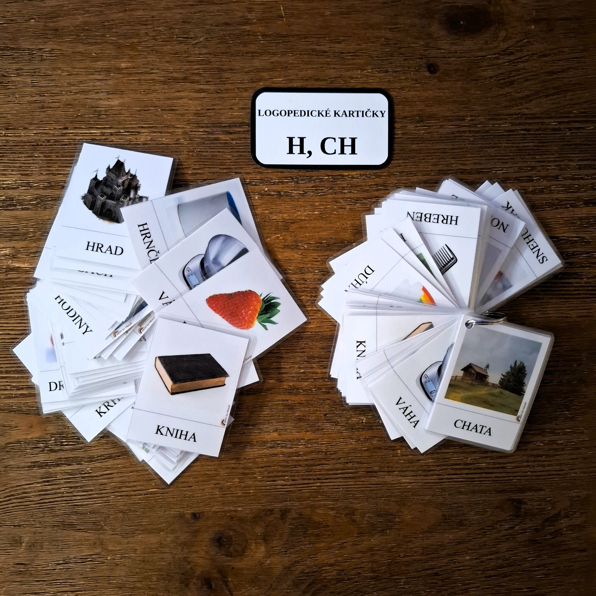 Logopedické kartičky na hlásky H a CH - 54 kusov s rozmerom 8x6 cm. Vznikli v spolupráci s logopédom.