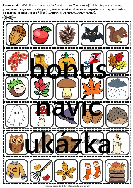 Pomocou týchto obrázkov sa deti zoznamujú s tradičnými symbolmi, zvykmi a motívmi, ktoré k jeseni neodmysliteľne patria.