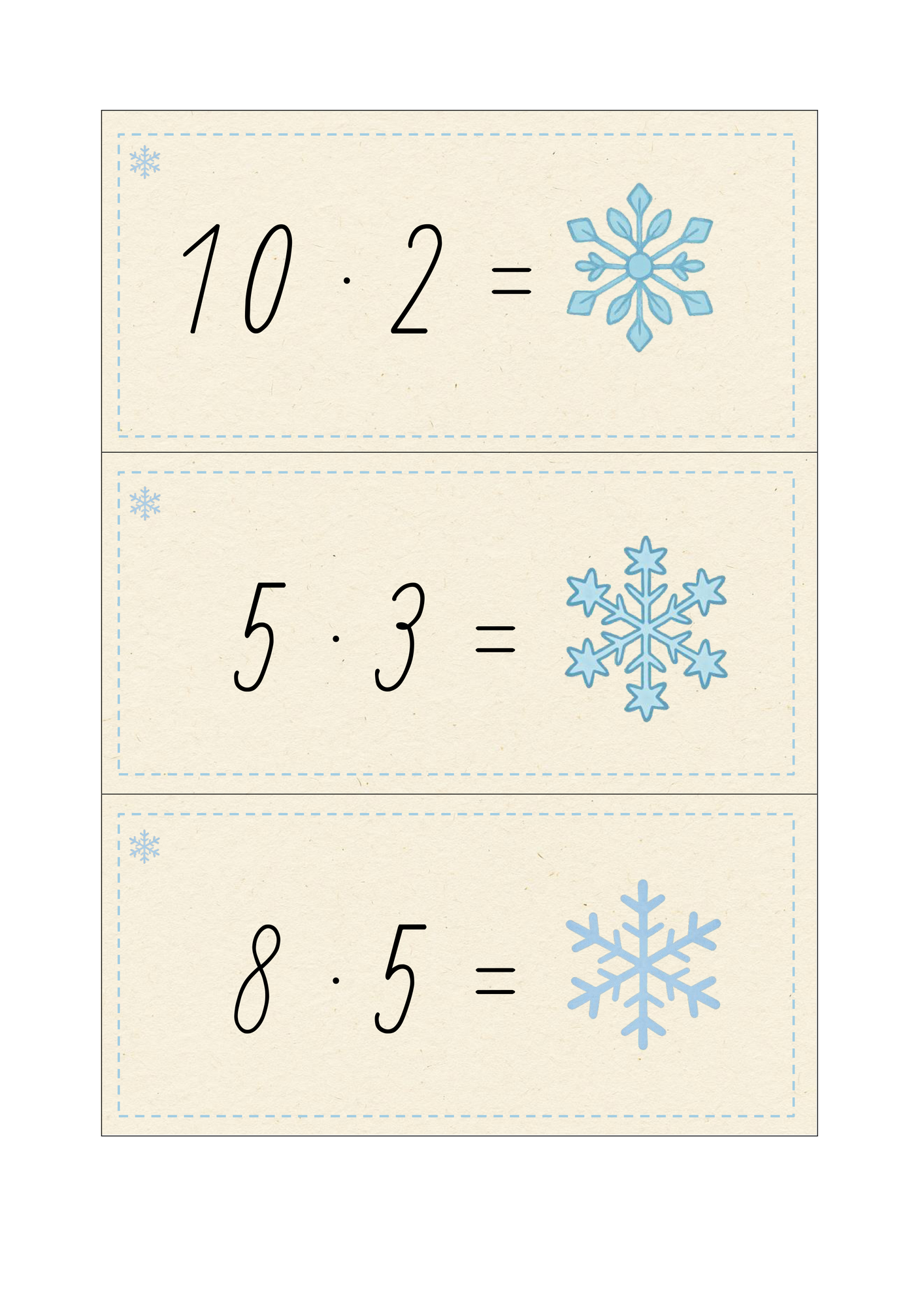 15x kartička s násobilkou 1 - 5 (jedna vločka)