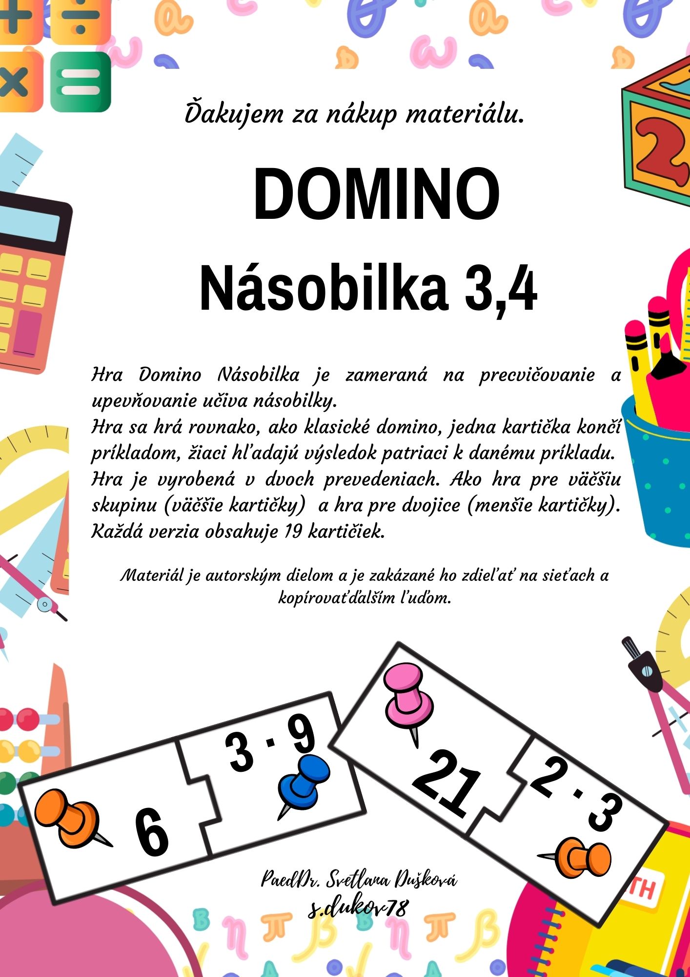 Domino na precvičovanie násobilky číslom 3, 4.