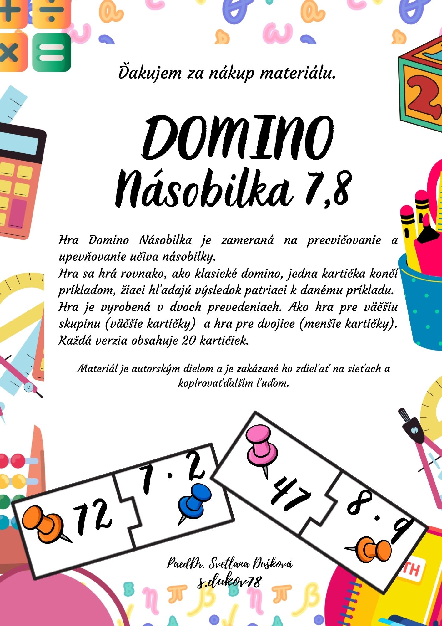 Domino na precvičovanie násobilky číslom 7, 8.