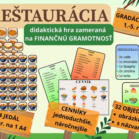Cieľ: vyskúšať si rolu predavača, či zákazníka, manipulovať s kartičkami, tvoriť a počítať príklady, vytvárať objednávky a cenníky, vydávať objednávky, podporiť zdravú súťaživosť a kreativitu u žiakov