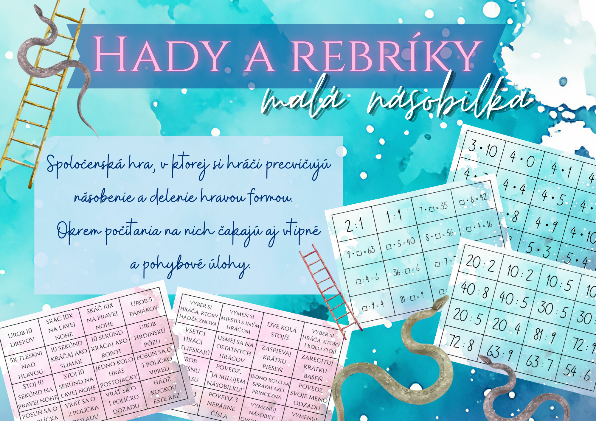 Hady a rebríky – malá násobilka je skvelým pomocníkom pre učiteľov, rodičov aj deti, ktoré sa chcú učiť bez stresu – prirodzene, hravo a s radosťou.