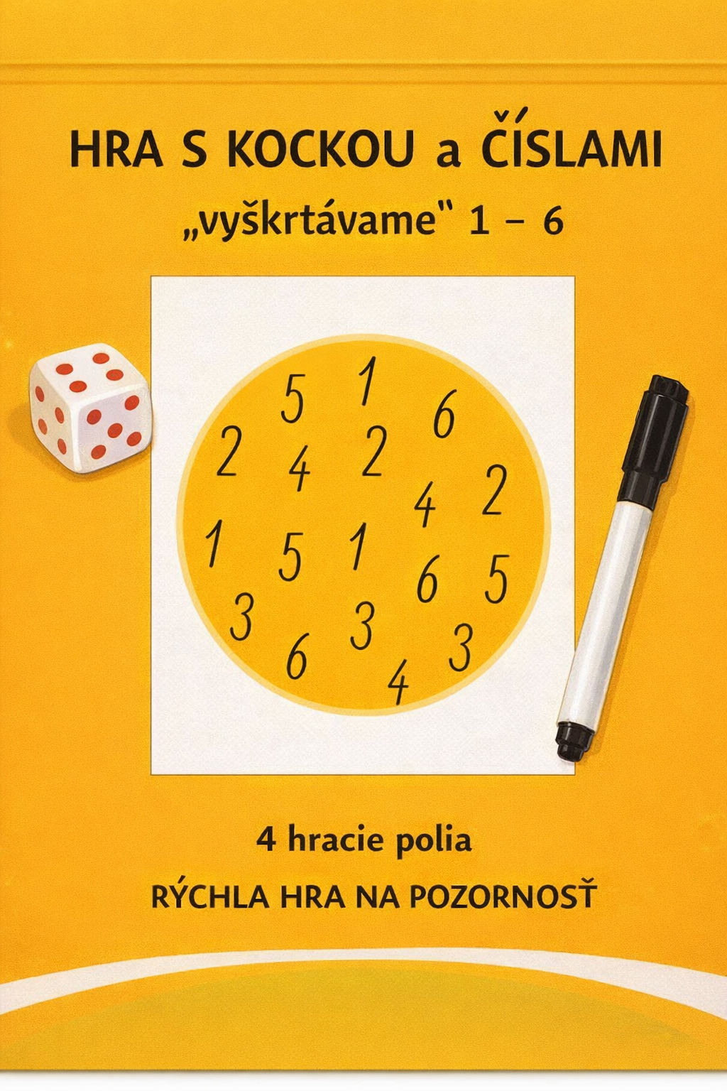 Ponúkané tabuľky slúžia na rýchlu, zábavnú aktivitu, pri ktorej žiak hádže kockou a vyškrtáva čísla 1 – 6, ktoré sa mu podarilo hodiť. Hra je vhodná pre viacero hráčov naraz alebo dvojice, napríklad ako krátka súťažná aktivita na matematike či počas DOD.