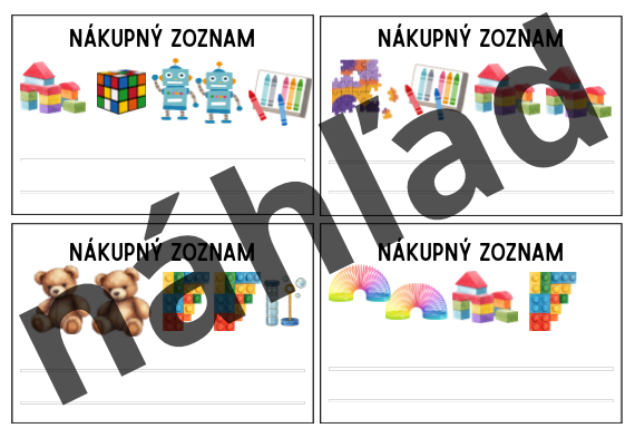 - 40 nákupných zoznamov rozdelených do 2 úrovní