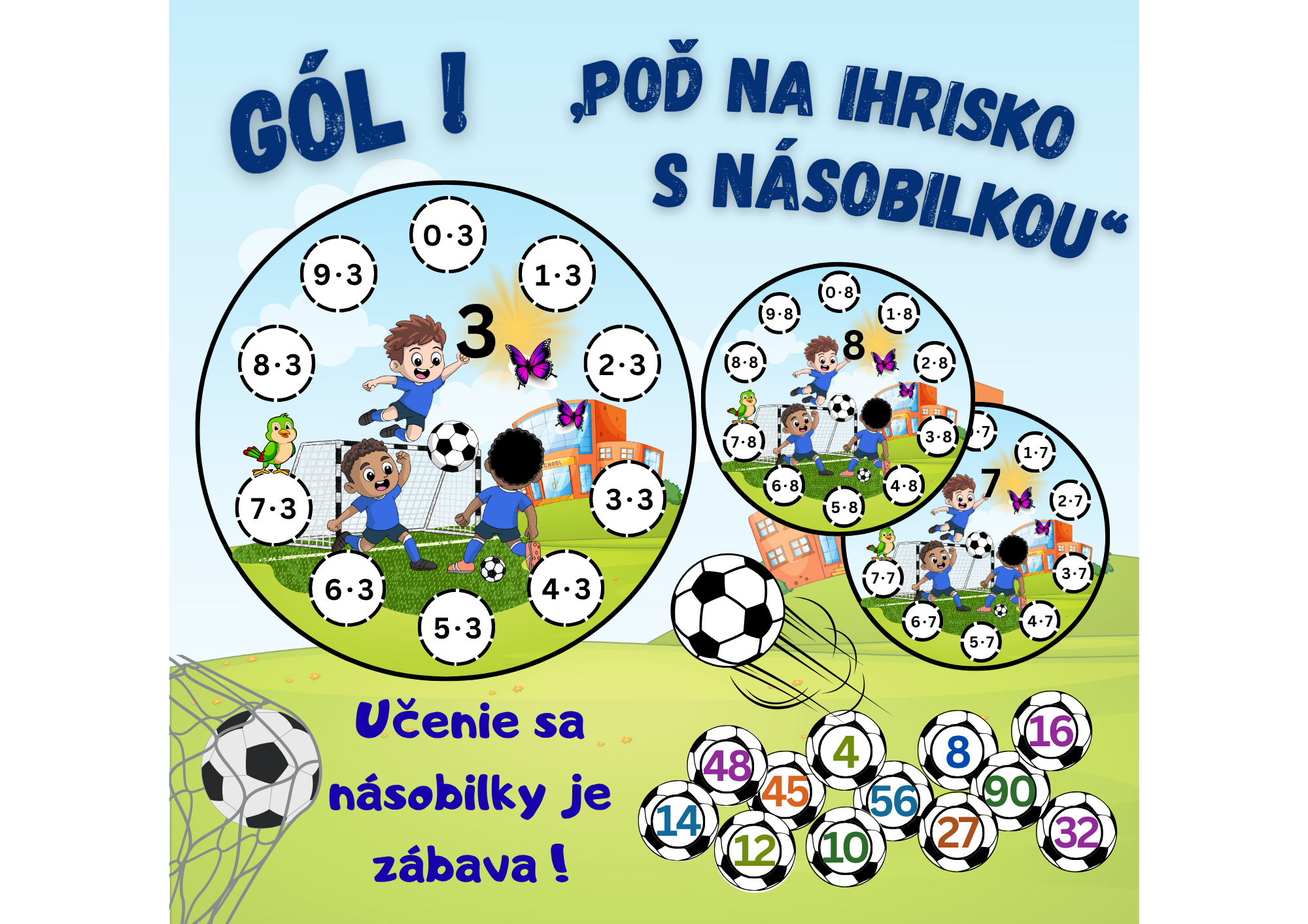 Súbor obsahuje 9 kruhov s príkladmi malej násobilky na formáte A4. Súčasťou sú futbalové lopty určené na vystrihnutie, na ktorých sú uvedené násobky čísel od 2 do 10.