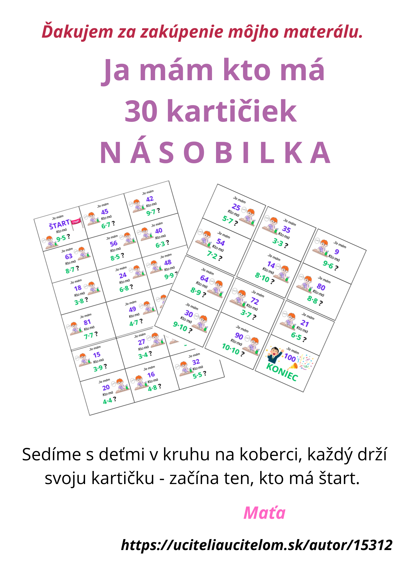 Reťazovka - ja mám, kto má? 30 kartičiek násobilky.