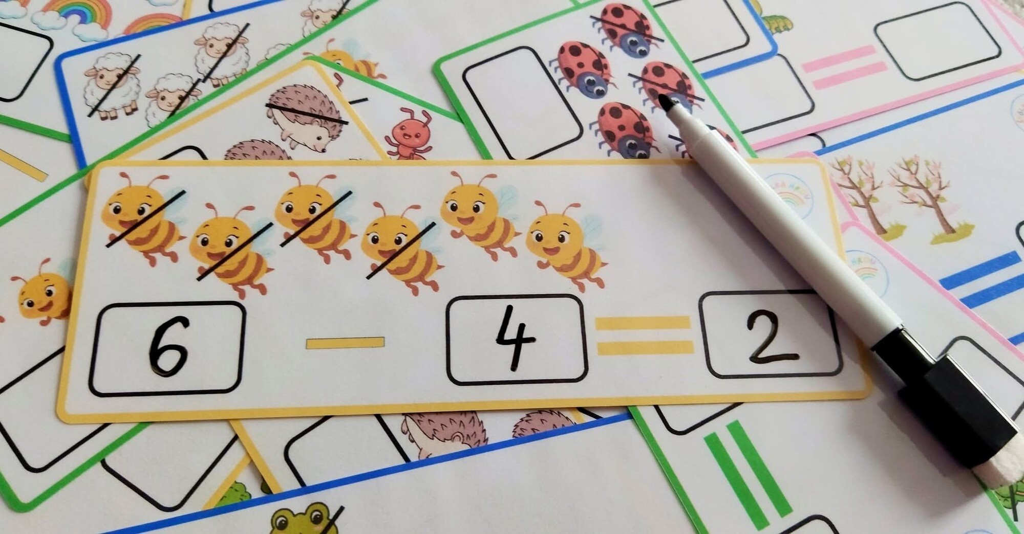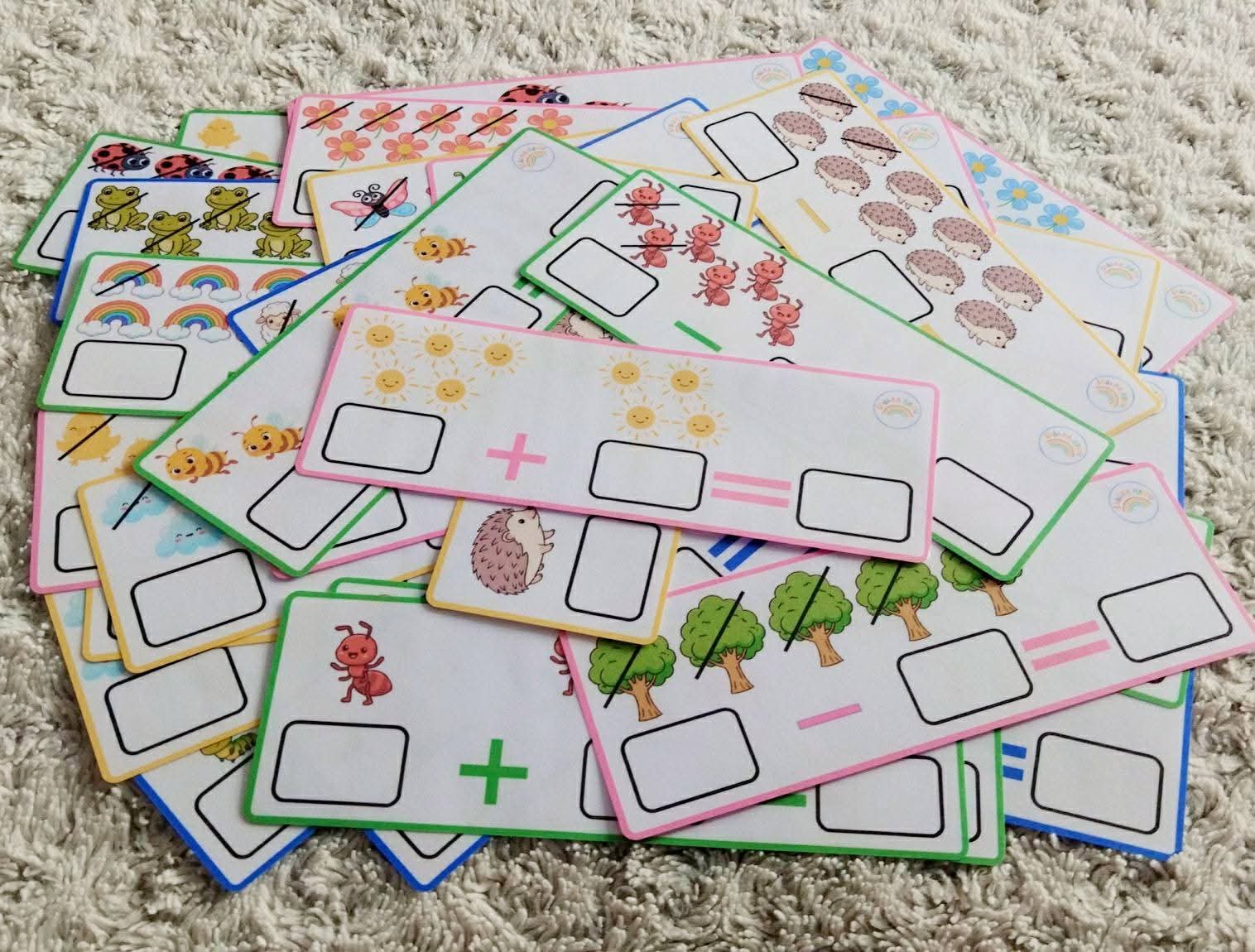 Aktivita obsahuje 48 kartičiek (24 na sčítanie, 24 na odčítanie).