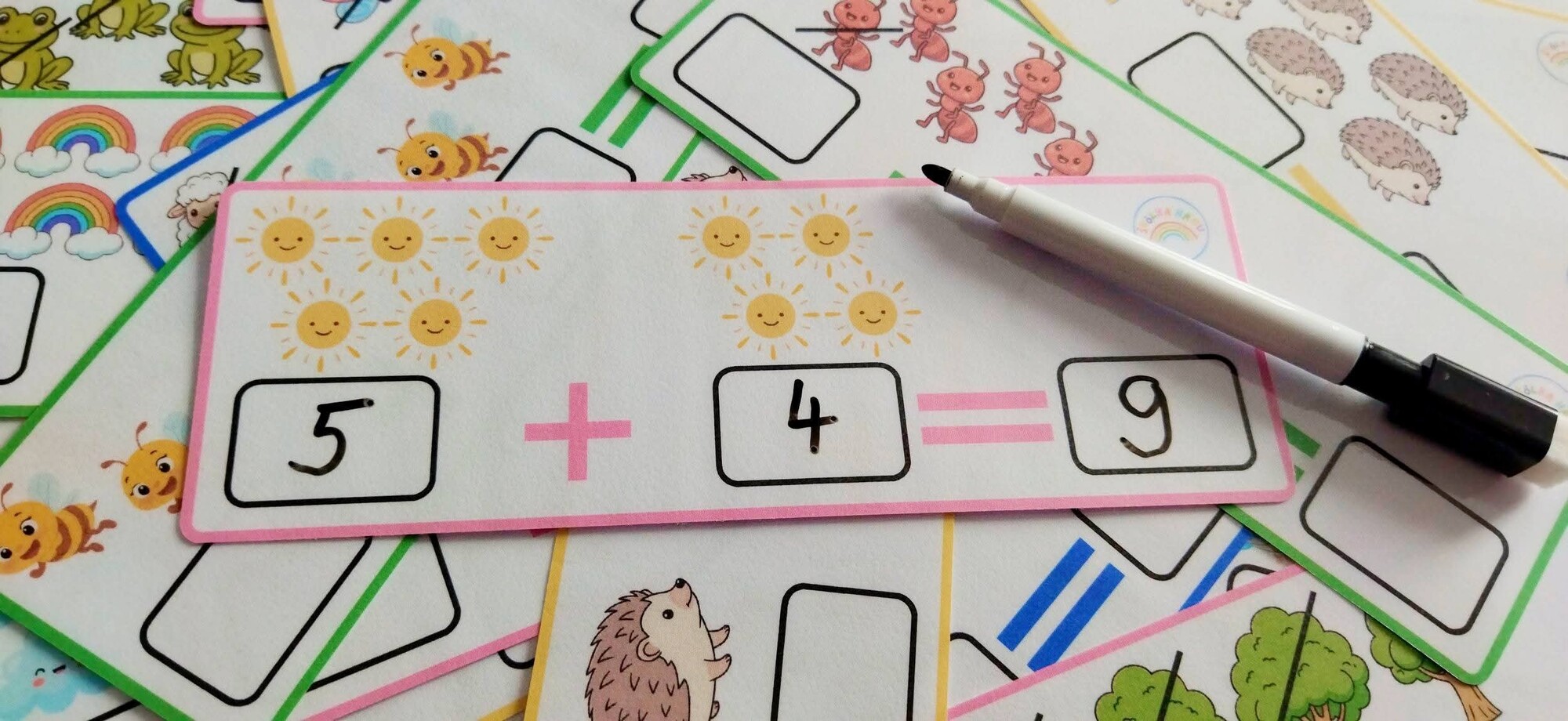 Dieťa si touto aktivitou precvičuje počítanie v obore do 10, logické myslenie, zrakové vnímanie, pozornosť, pamäť, jemnú motoriku, vizuomotoriku.