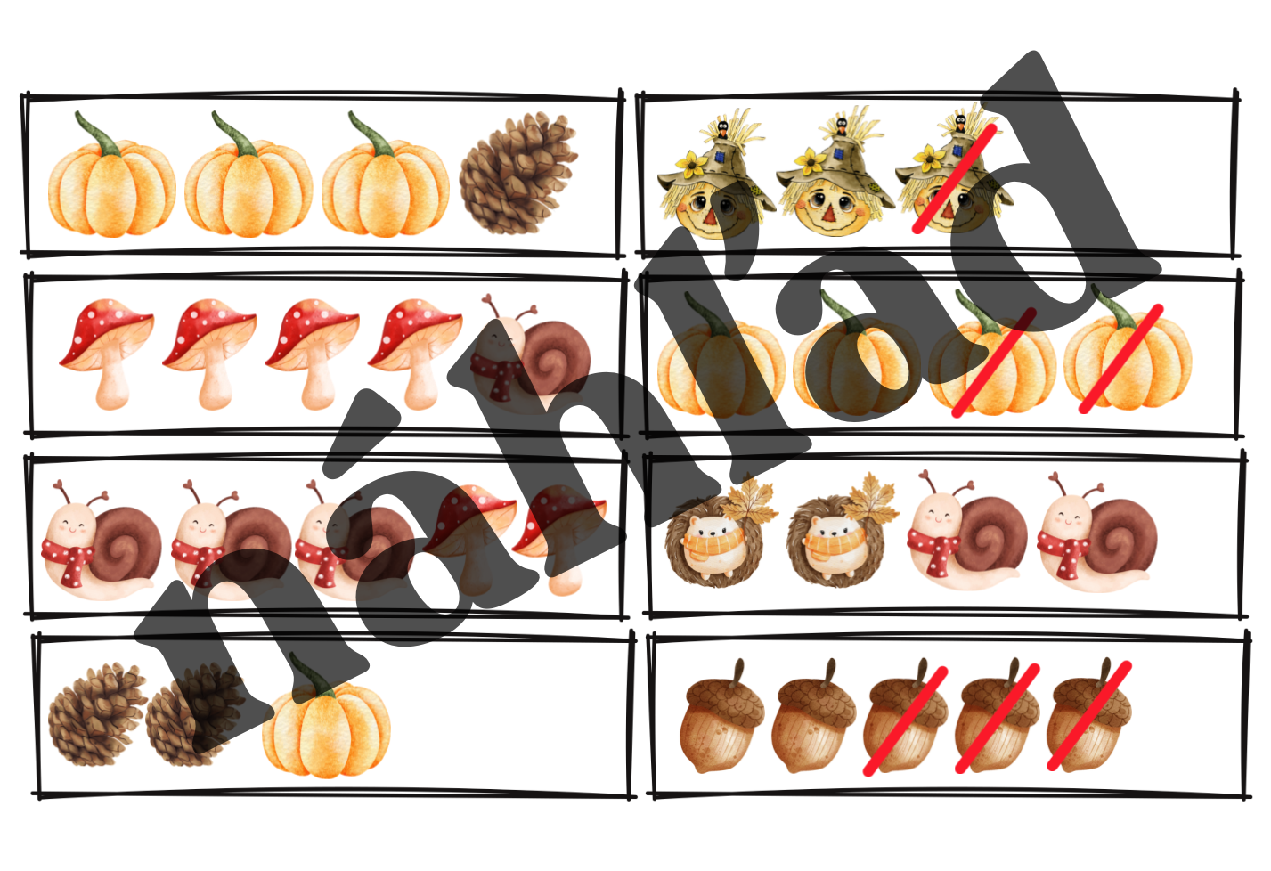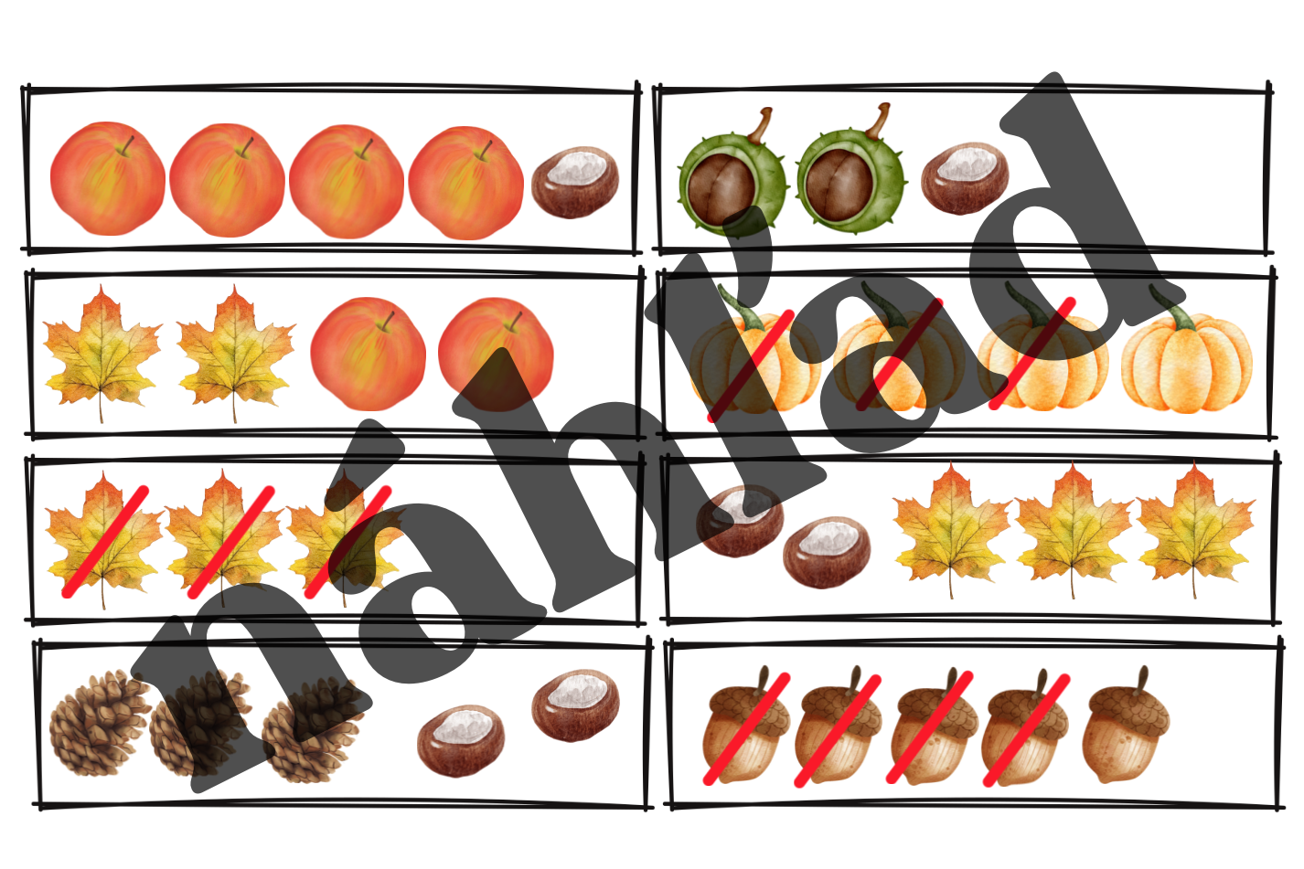 Jesenné počítanie, sčítanie a odčítanie do 5 je hravý a vizuálne príťažlivý pracovný list pre prvákov. Deti riešia osem obrázkových príkladov na každej z piatich strán s pomocou jesenných motívov, ako sú listy, gaštany, jablká alebo tekvice. Materiál podporuje samostatnú prácu, rozvíja základné matematické zručnosti.