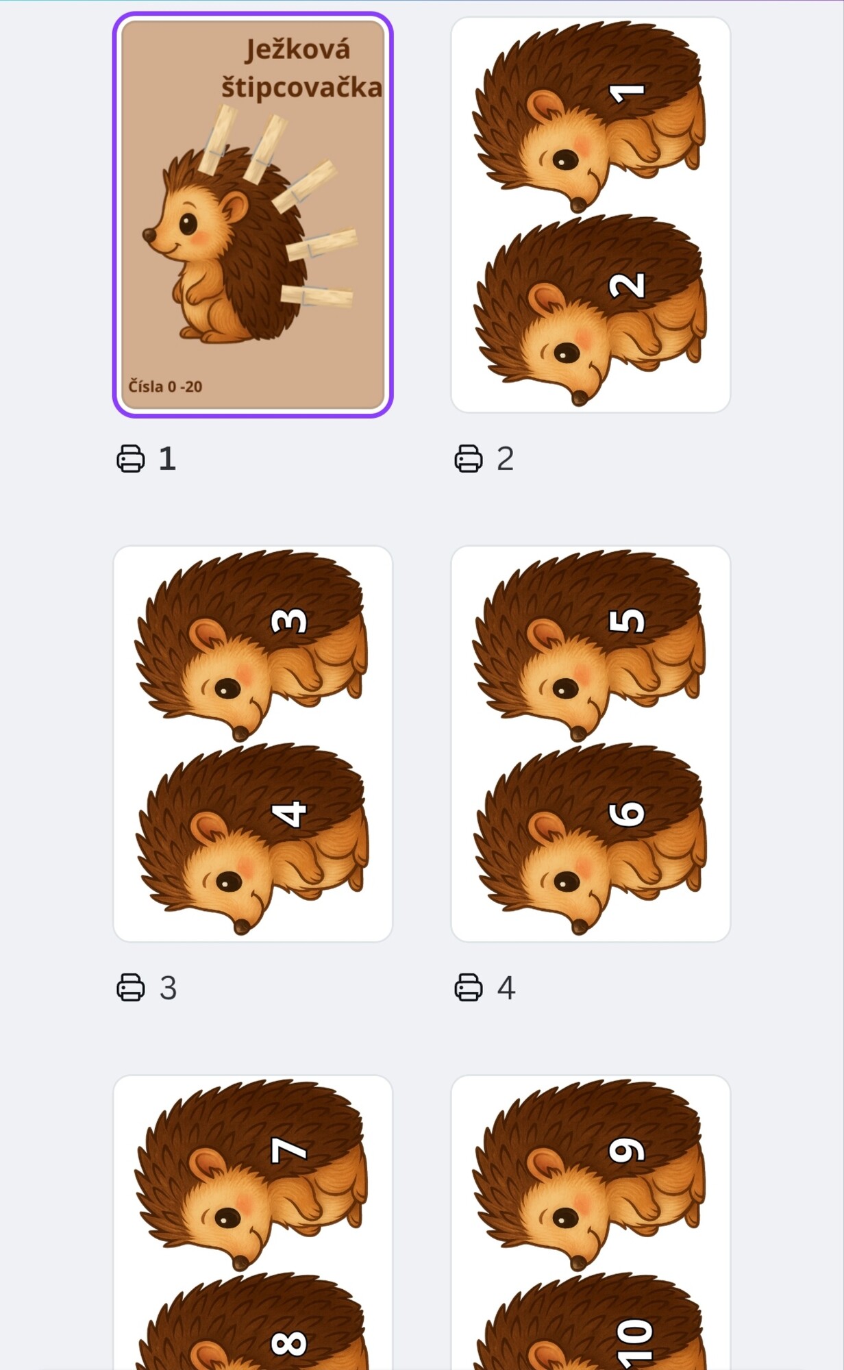 20x ježko na priradovanie štipcov ku číslu na ježkovi.