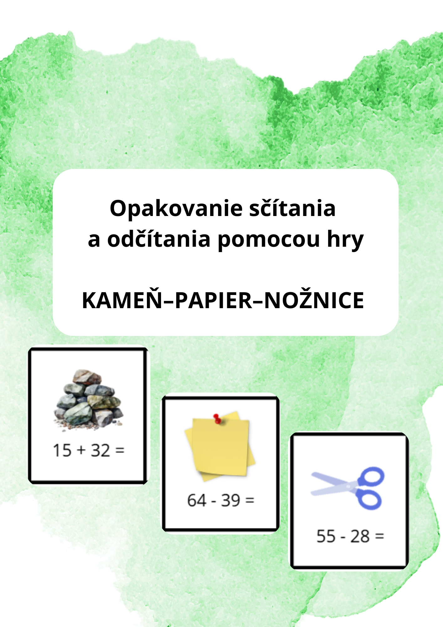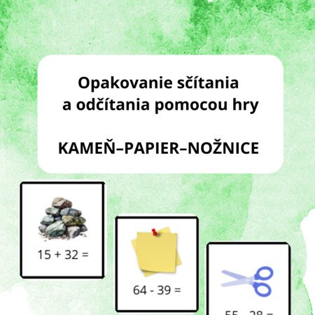 Táto originálna hra spája klasické Kameň–papier–nožnice s učením. Deti si vyberajú kartičky, hrajú známu hru a víťaz má za úlohu vyriešiť príklad na zadnej strane. Hravou formou si tak precvičia sčítanie a odčítanie dvojciferných čísel, trénujú rýchle myslenie a súťaživého ducha.