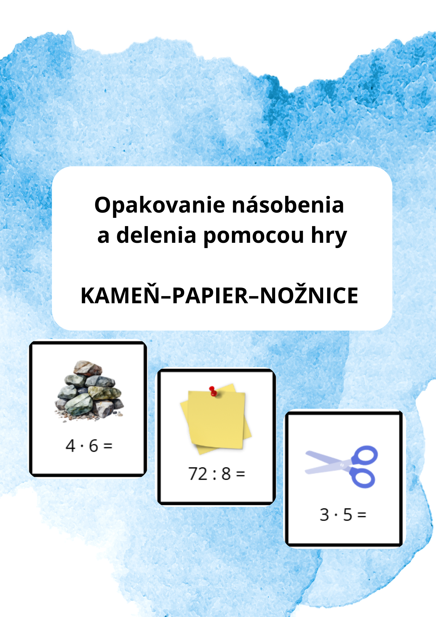 Táto originálna hra spája klasické Kameň–papier–nožnice s učením. Deti si vyberajú kartičky, hrajú známu hru a víťaz má za úlohu vyriešiť príklad na zadnej strane. Hravou formou si tak precvičia násobenie a delenie, trénujú rýchle myslenie a súťaživého ducha.