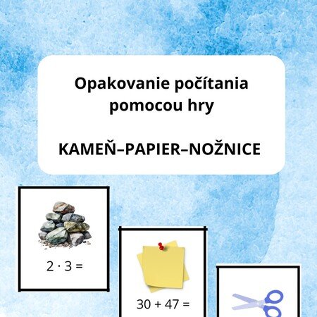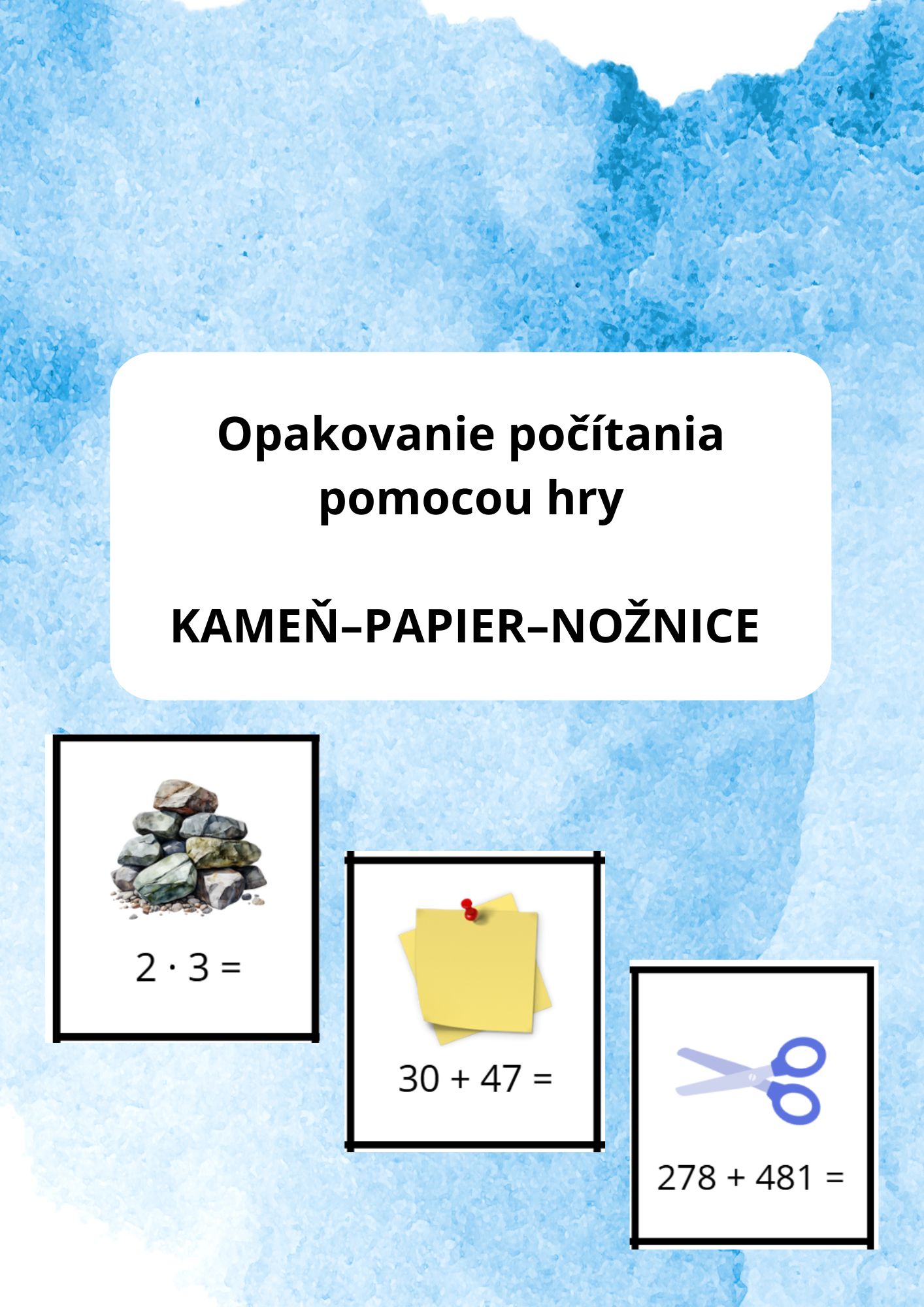 Táto originálna hra spája klasické Kameň–papier–nožnice s učením. Žiaci si vyberajú kartičky, hrajú známu hru a víťaz má za úlohu vyriešiť príklad na zadnej strane. Hravou formou si tak precvičia počítanie, trénujú rýchle myslenie a súťaživého ducha.