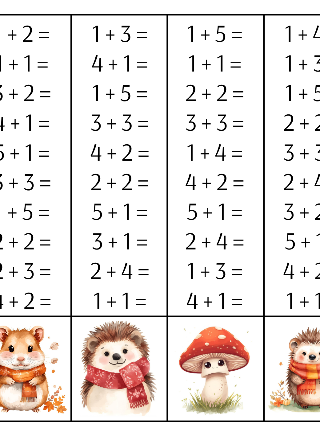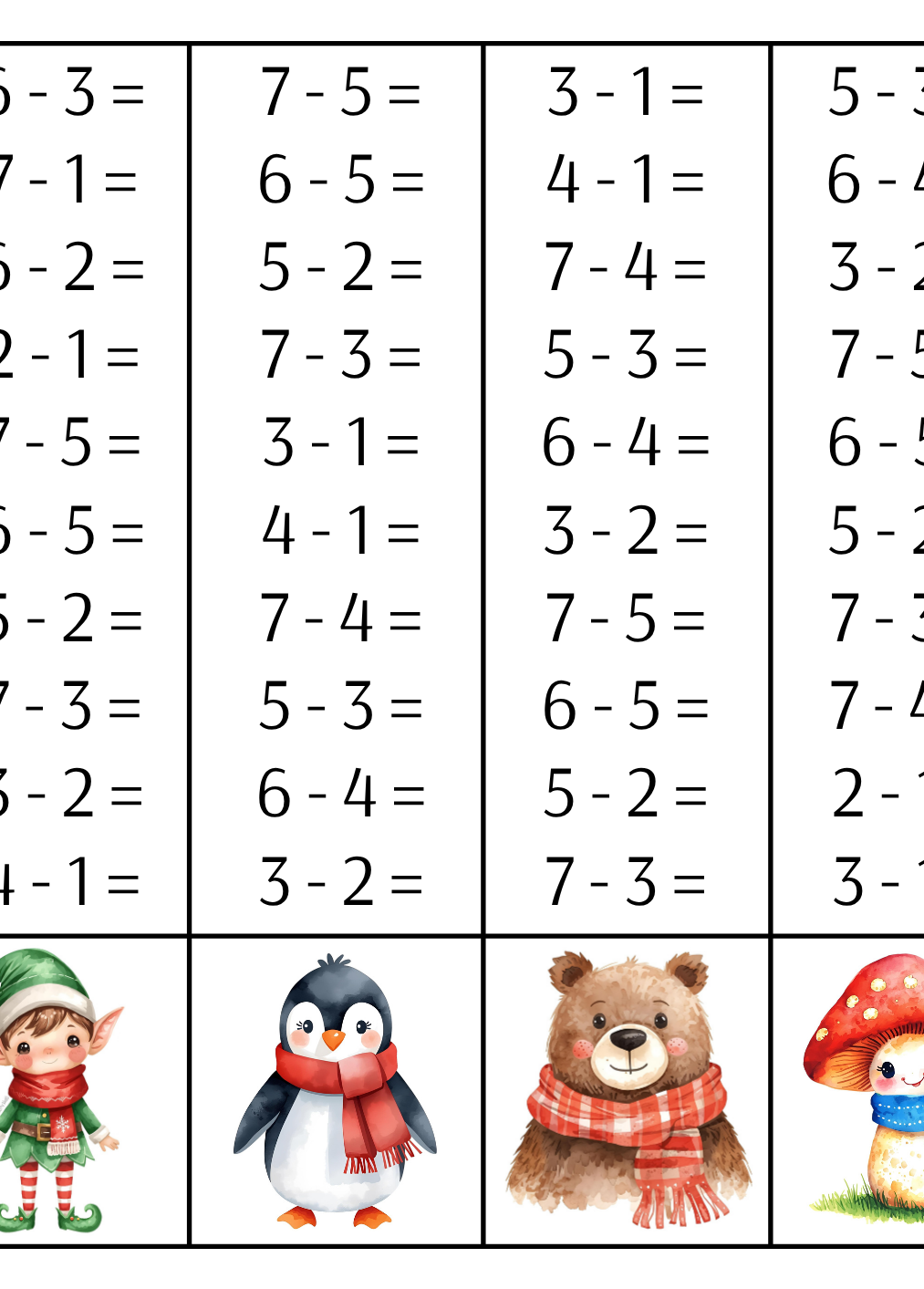 Kartičky s jesenným/zimným/vianočným motívom. Súbor obsahuje 84 kartičiek. Príklady na sčitovanie a odčitovanie v obore postupne do 6/7/8/9/10. Po zalaminovaní vydržia roky. Sú určené na domáce precvičovanie počítania. Môžu sa však využiť aj v triede na samostatné precvičovanie alebo pre rýchlych žiakov. Deti ich milujú a hravo si zapamätajú, ktorú kartičku už mali.