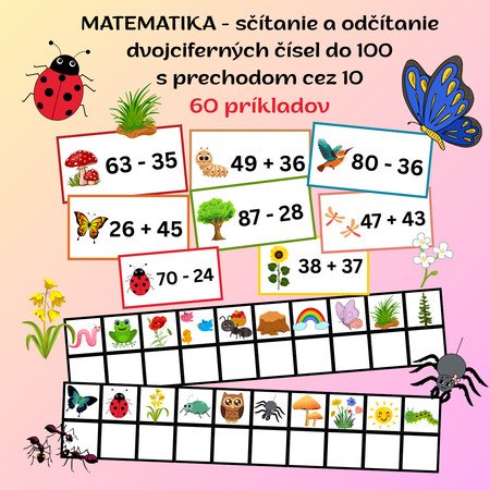 Hravé sčítanie a odčítanie dvojciferných čísel do 100 s prechodom cez 10.