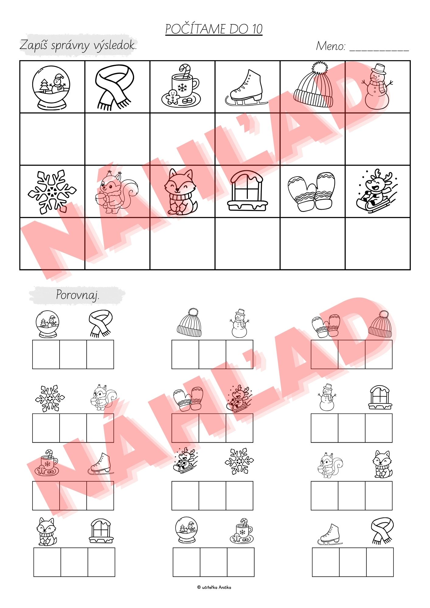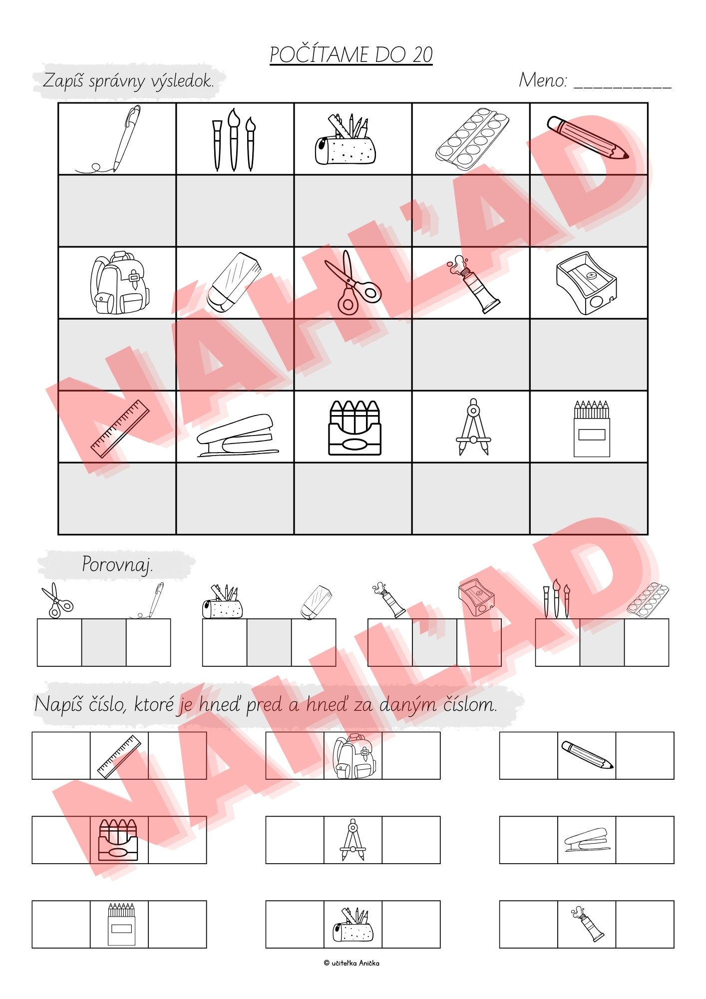 Súčasťou materiálu je aj následná práca s číslami – porovnávanie, zoraďovanie, určovanie čísel na číselnej osi či hľadanie susedných čísel. Aktivita podporuje samostatnosť, orientáciu v priestore, koncentráciu a pozitívny vzťah k matematike.
