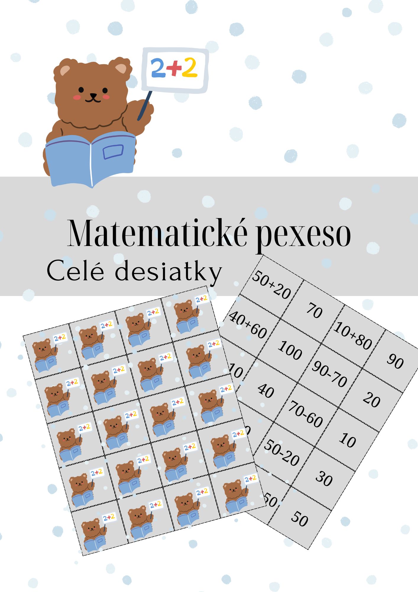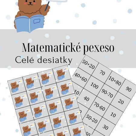 Milí kolegovia, v súbore sa nachádza pexeso zamerané na precvičenie si sčítania a odčítania v obore do 100 - celé desiatky. Pexeso stačí zalaminovať a postrihať.