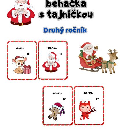 Kartičky rozstriháme a rozmiestnime po triede. Každý žiak, alebo skupina žiakov má svoju vlastnú behaciu kartičku. Žiaci po nájdení obrázka vypočítajú príklad a do behacej kartičky podľa obrázka zapíšu výsledok a vedľa neho písmeno. Po vypočítaní všetkých príkladov vylúštia tajničku.