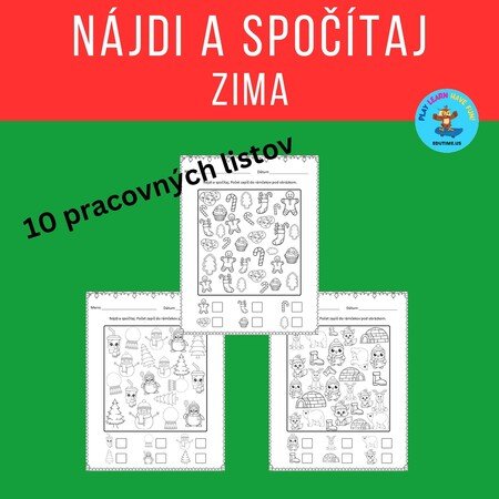 Pracovné listy na precvičenie spočítavania. Nájdi a spočítaj. Počet zapíš do rámčekov pod obrázkom.