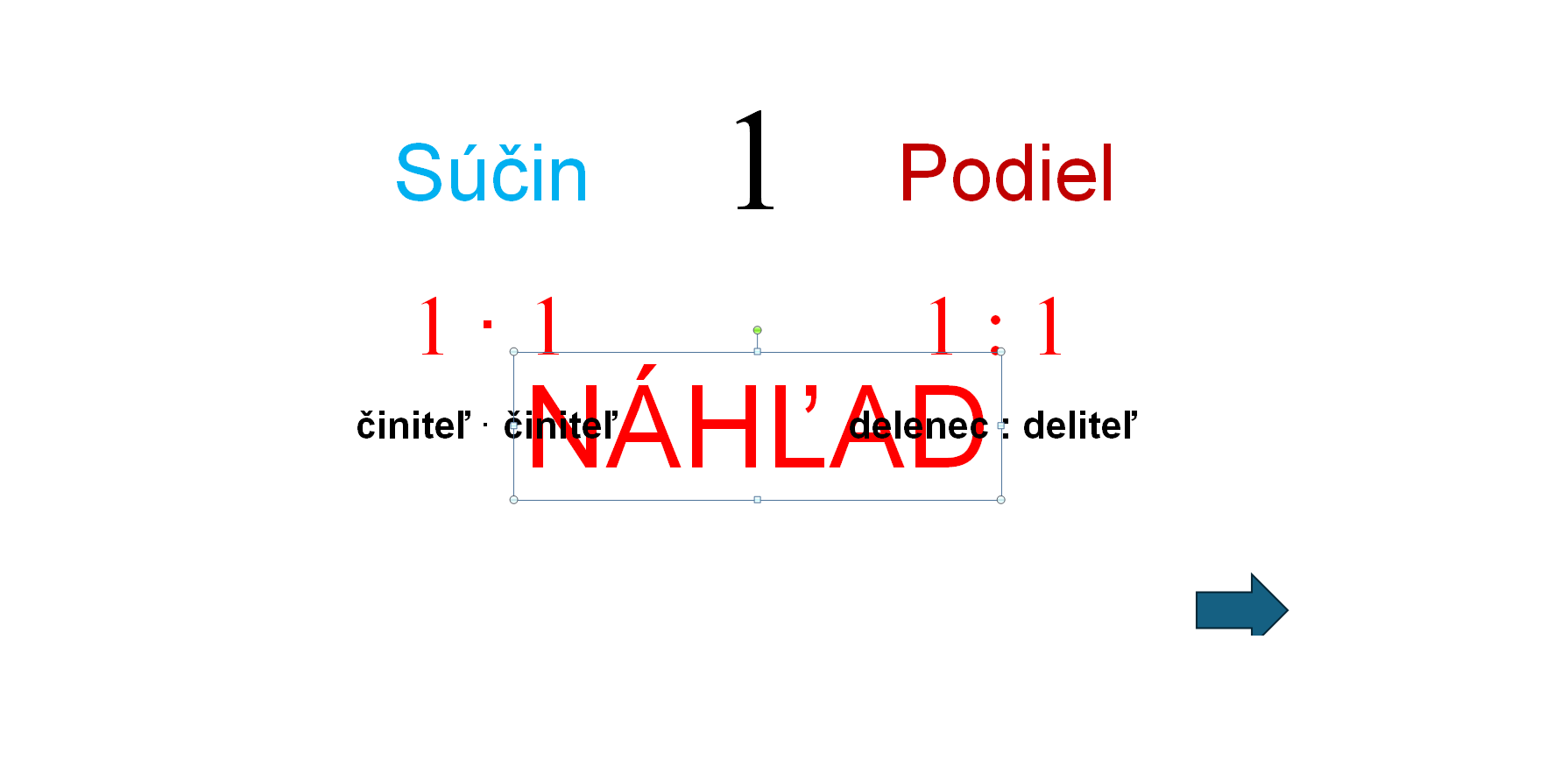 Jednoduchá prezentácia na násobenie a delenie číslom 1. Súčasťou je aj pexeso a slovné úlohy.