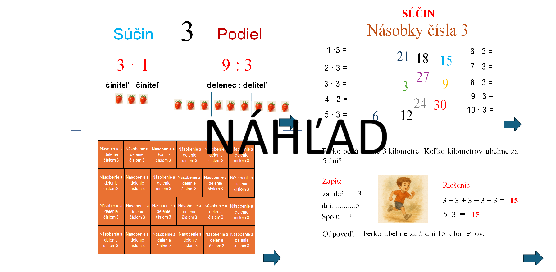 Násobenie a delenie 3.Súčin a podiel číslom 3.Slovné úlohy.Pexeso.