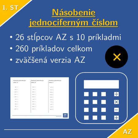 V materiáli sa nachádza celkom 26 stĺpcov (A-Z) s 10 príkladmi (celkom 260 príkladov) na násobenie jednociferným číslom vrátane riešenia týchto stĺpcov. Ďalej sa tu nachádza všetkých 26 stĺpcov (A-Z) s upravenou veľkosťou písma na 20 pre žiakov so zrakovým postihnutím.