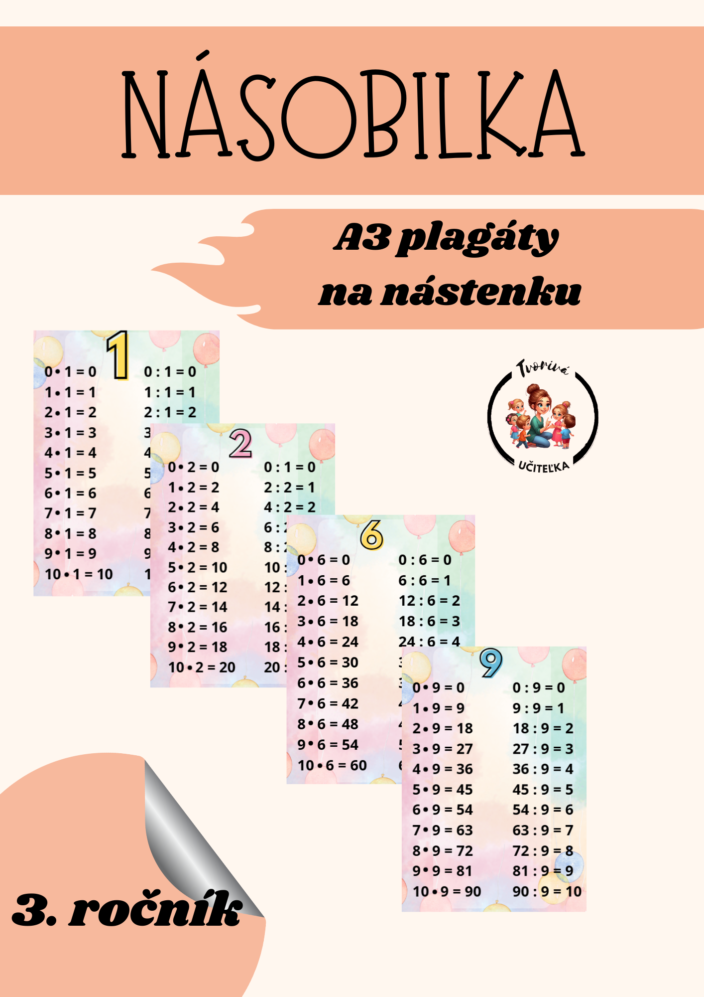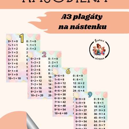 Obsah:Materiál obsahuje plagáty násobilky a delilky vo formáte A3.Aktivita:Materiál je vhodné vytlačiť a zalaminovať.