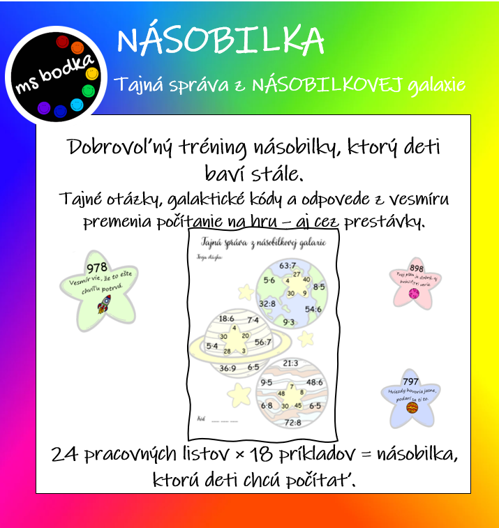 Dobrovoľný tréning násobilky v hravej celoročnej vesmírnej podobe.