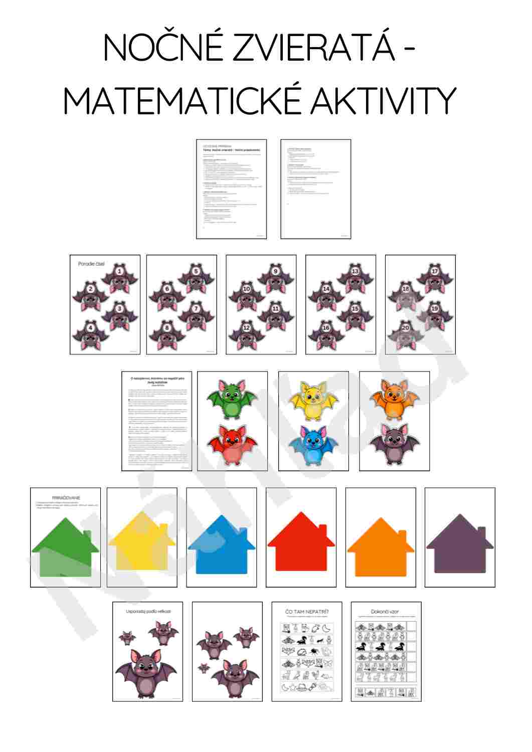 Tento originálny edukačný materiál spája hravosť, rozvoj myslenia a krásny príbeh o netopierovi, ktorý pomáha deťom prirodzene rozvíjať jazyk, fantáziu aj matematické predškolské zručnosti. Materiál je navrhnutý tak, aby ho učiteľka mohla používať okamžite – bez príprav, bez ďalších pomôcok, hravo aj v rannom kruhu.