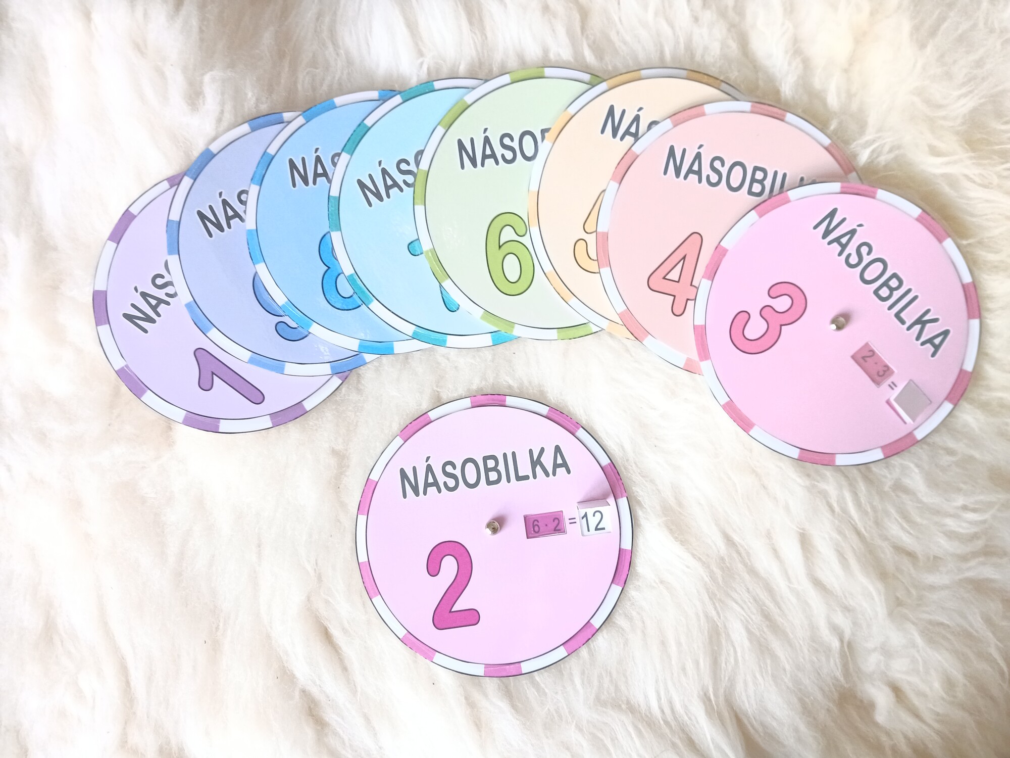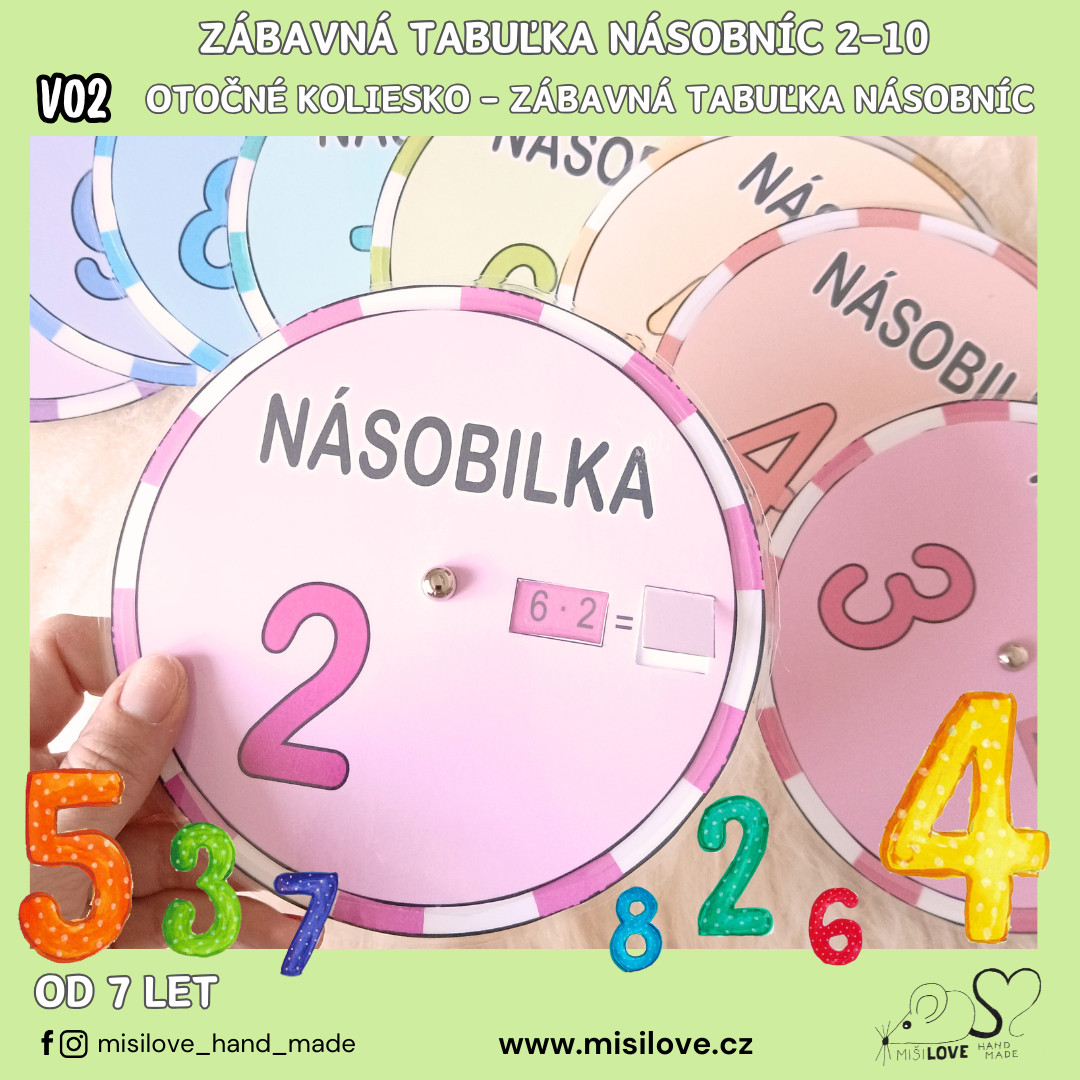 Otočné koleso na precvičovanie násobilky je vizuálna učebná pomôcka, v ktorej je správna odpoveď skrytá pod okienkom.